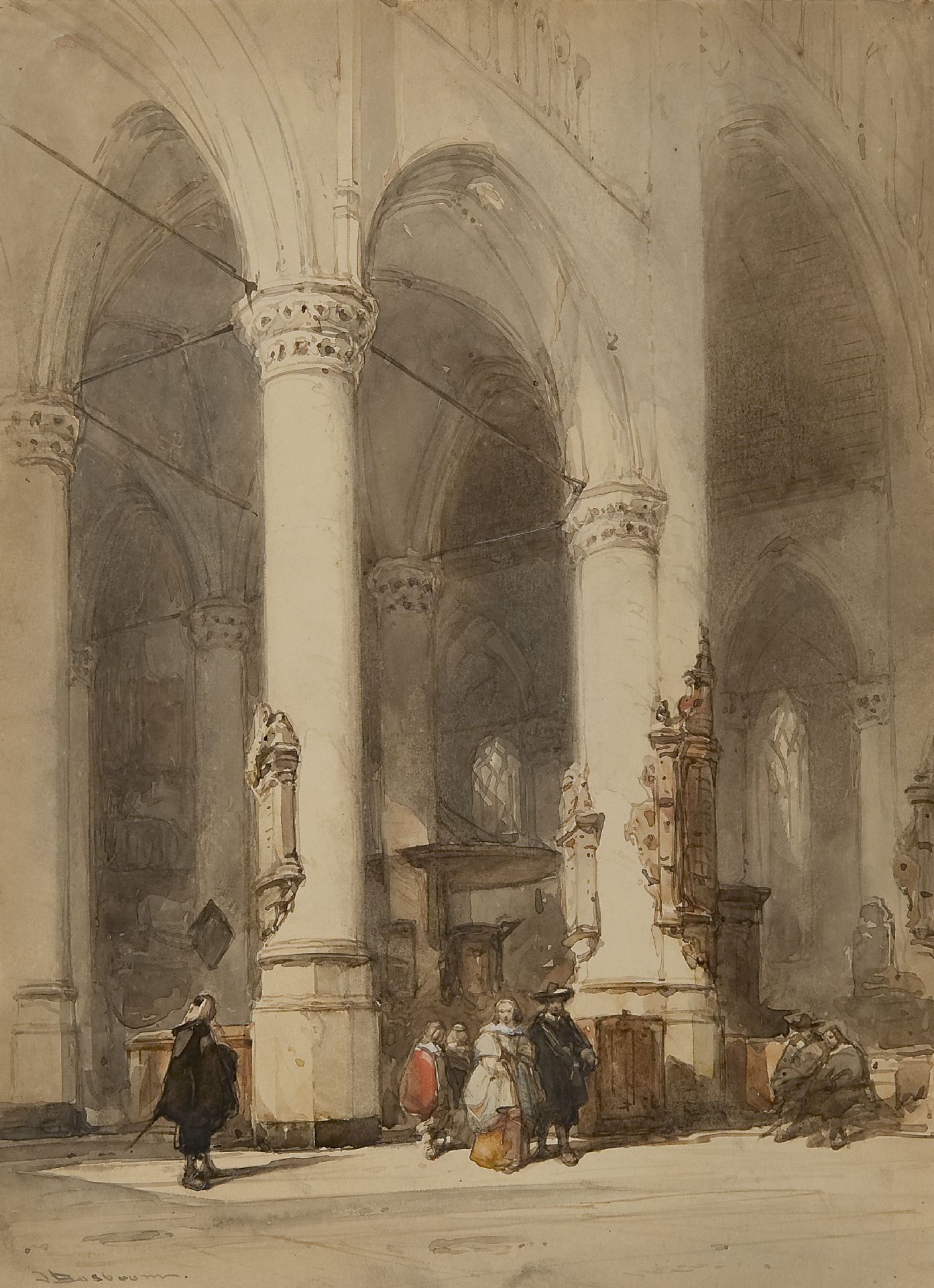 Johannes Bosboom kunstwerk • aquarel • tekening • voorheen te koop Interieur van de Hooglandsche Kerk, Leiden