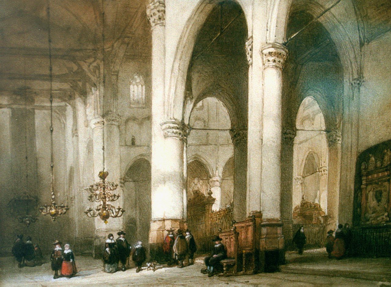Johannes Bosboom kunstwerk • aquarel • tekening • voorheen te koop Interieur van de Laurenskerk, Rotterdam