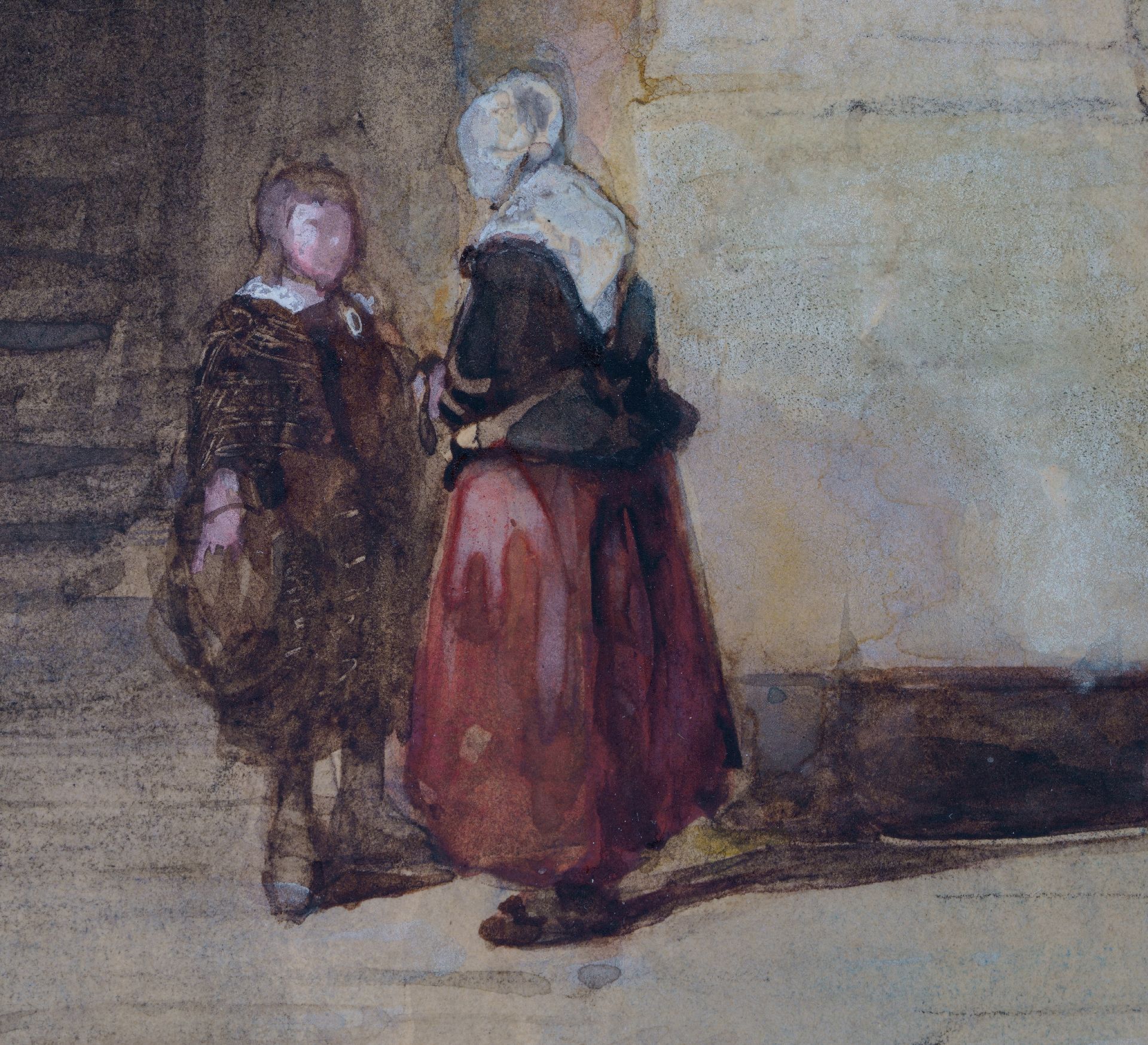 Johannes Bosboom | Figuren in de Pieterskerk, Leiden, inkt en aquarel op papier, 11,9 x 8,4 cm, gesigneerd r.o.