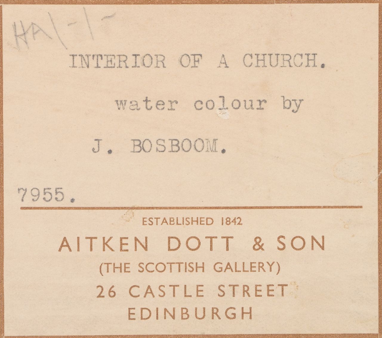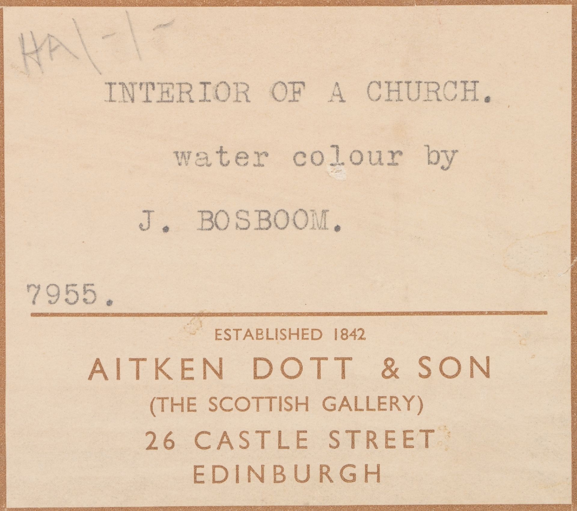 Herkomst: kunsthandel Aitken Dott & Son, Edinburgh, Groot-Brittannië, inv.nr. 7955; part. bezit Schotland.