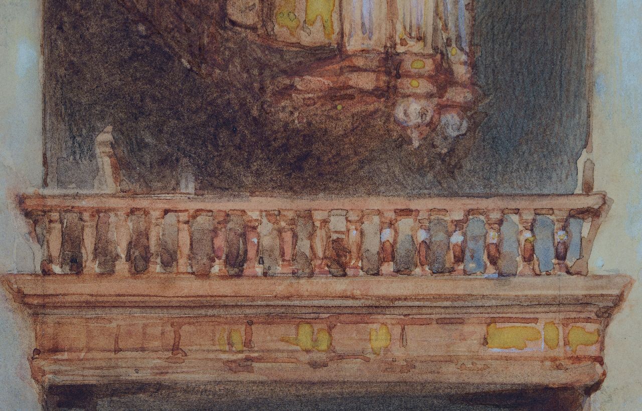 Tentoonstelling: Deze aguarel hangt tentoon in het Nationaal orgelmuseum te Elburg, de nieuwe eigenaar.