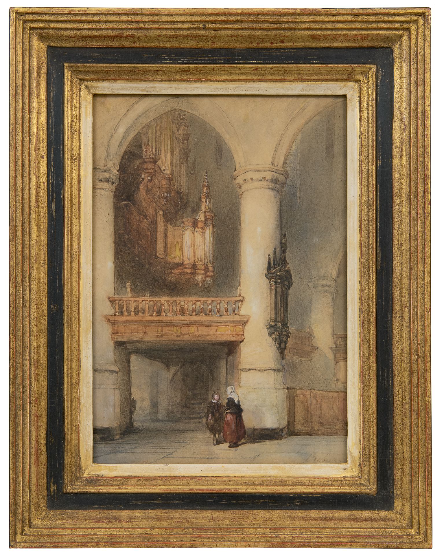 Johannes Bosboom kunstwerk • aquarel • tekening • voorheen te koop Interieur van de Oude Kerk in Delft