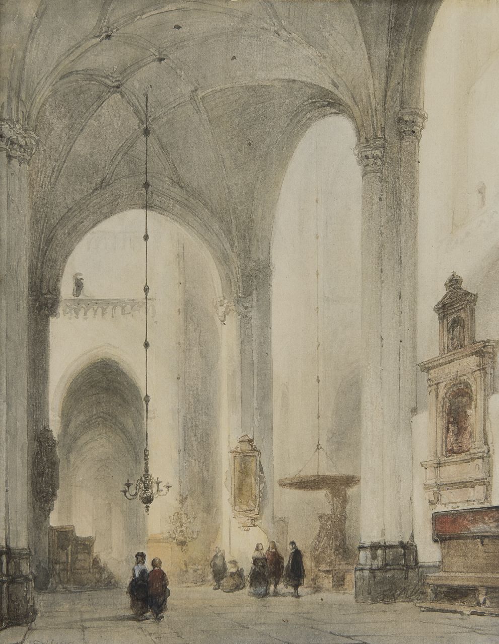 Johannes Bosboom kunstwerk • aquarel • tekening • voorheen te koop Kerkinterieur (Grote Kerk van Breda)