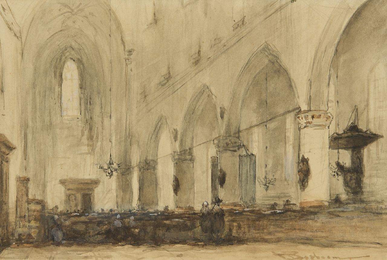Johannes Bosboom kunstwerk • aquarel • tekening • voorheen te koop Kerkinterieur