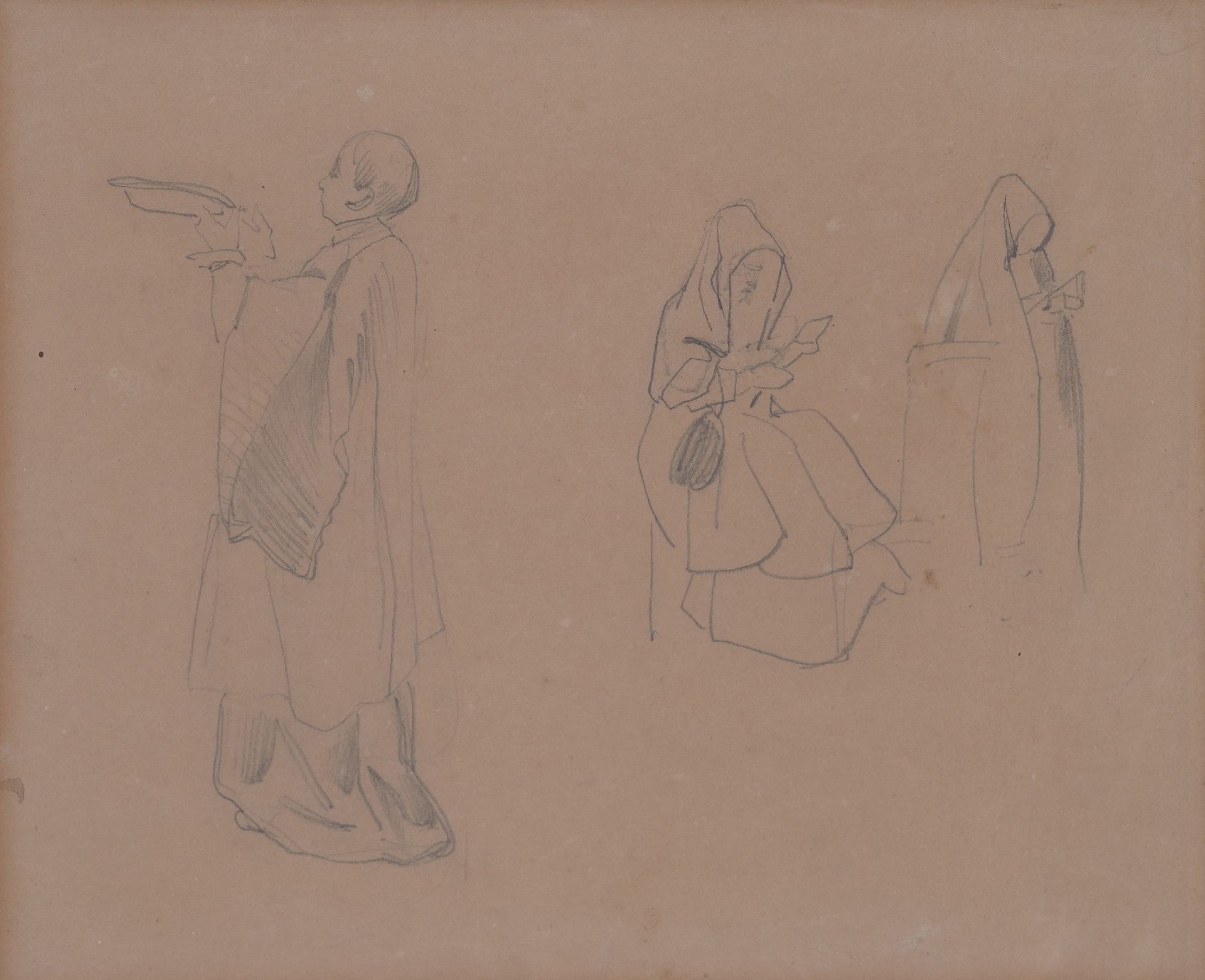 Johannes Bosboom kunstwerk • aquarel • tekening • voorheen te koop Studie van kloosterling en nonnen