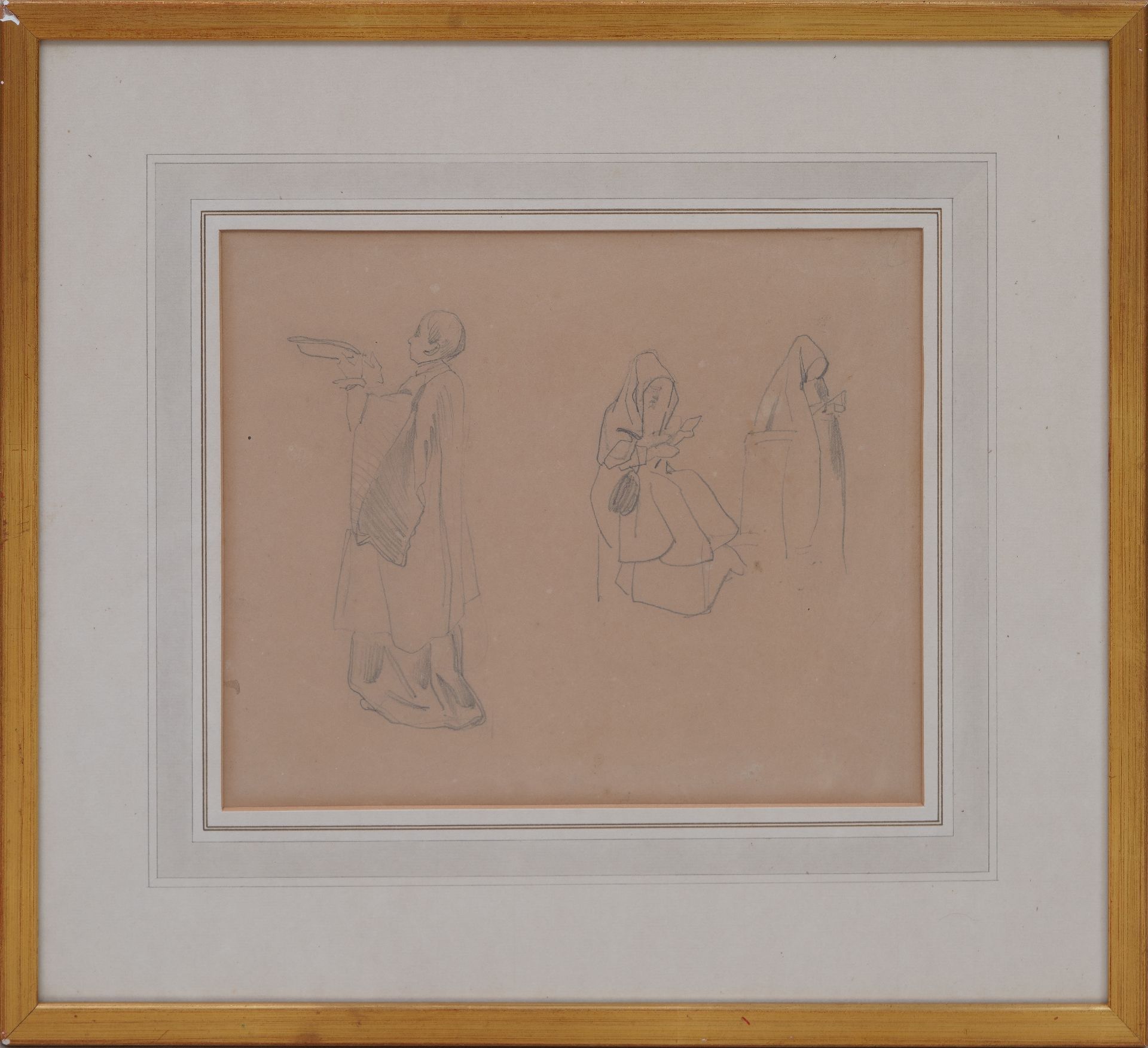 Johannes Bosboom kunstwerk • aquarel • tekening • voorheen te koop Studie van kloosterling en nonnen