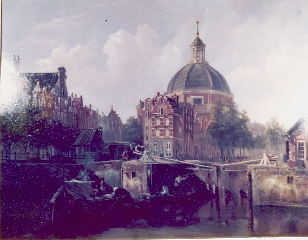 Johannes Bosboom kunstwerk • schilderij • voorheen te koop Amsterdams stadsgezicht, met de Koepelkerk