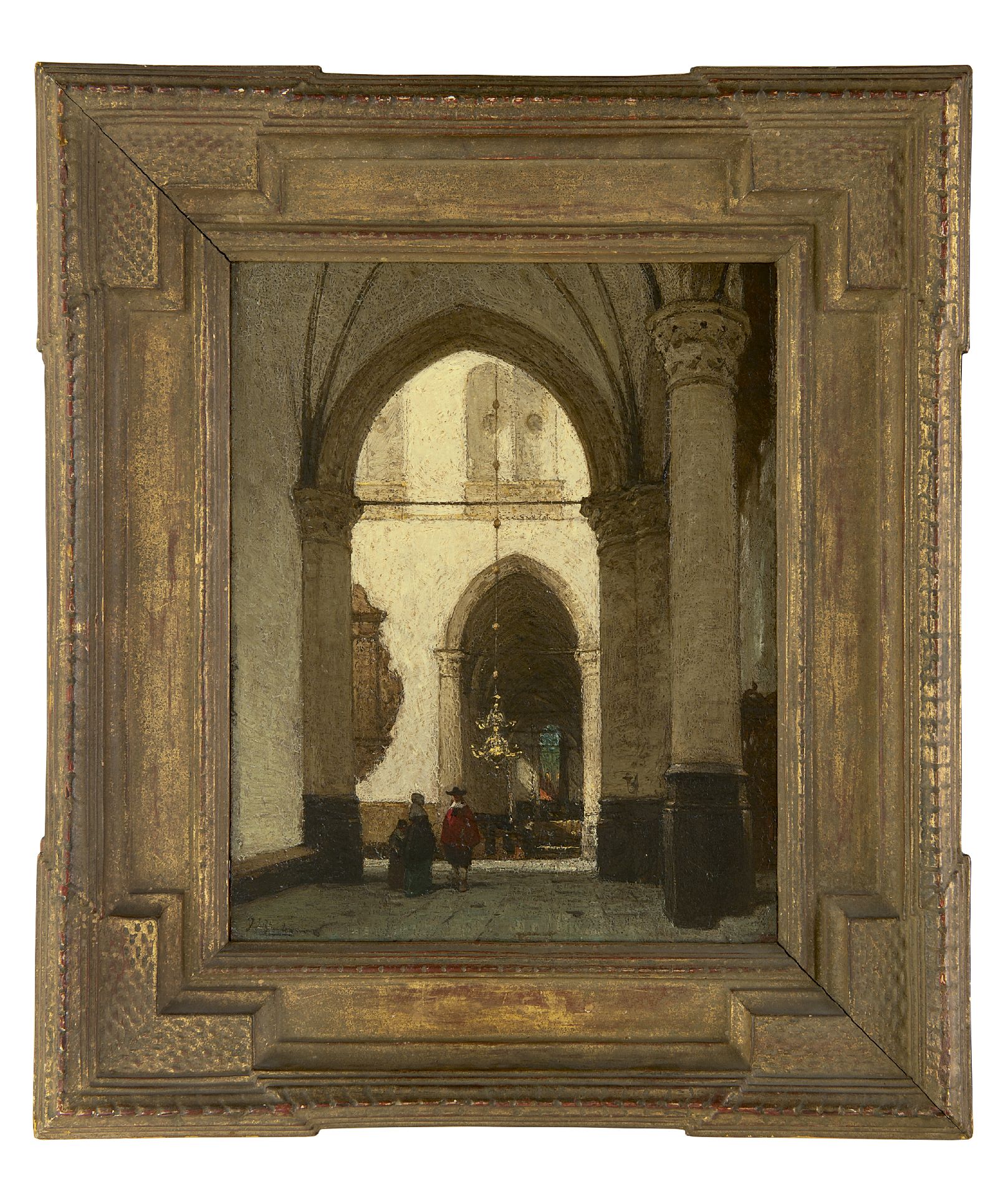 Johannes Bosboom werd in 1817 geboren in Den Haag en ging in de leer bij de stadsgezichtenschilder Bart van Hove. Al spoedig koos hij het kerkinterieur als zijn specialiteit, daartoe aangemoedigd door de lof van zijn tijdgenoten. Zijn aquarellen en schilderijen tonen verstilde kerkinterieurs, bevolkt door figuren in 17e-eeuwse kledij. Als 'Haagse Scholer' probeerde hij de indrukken weer te geven die het gebouw op hem maakte. Daarnaast was hij geïnspireerd door de lichtval en atmosfeer in het werk van de 17e-eeuwse schilders Rembrandt en Emanuel de Witte.
