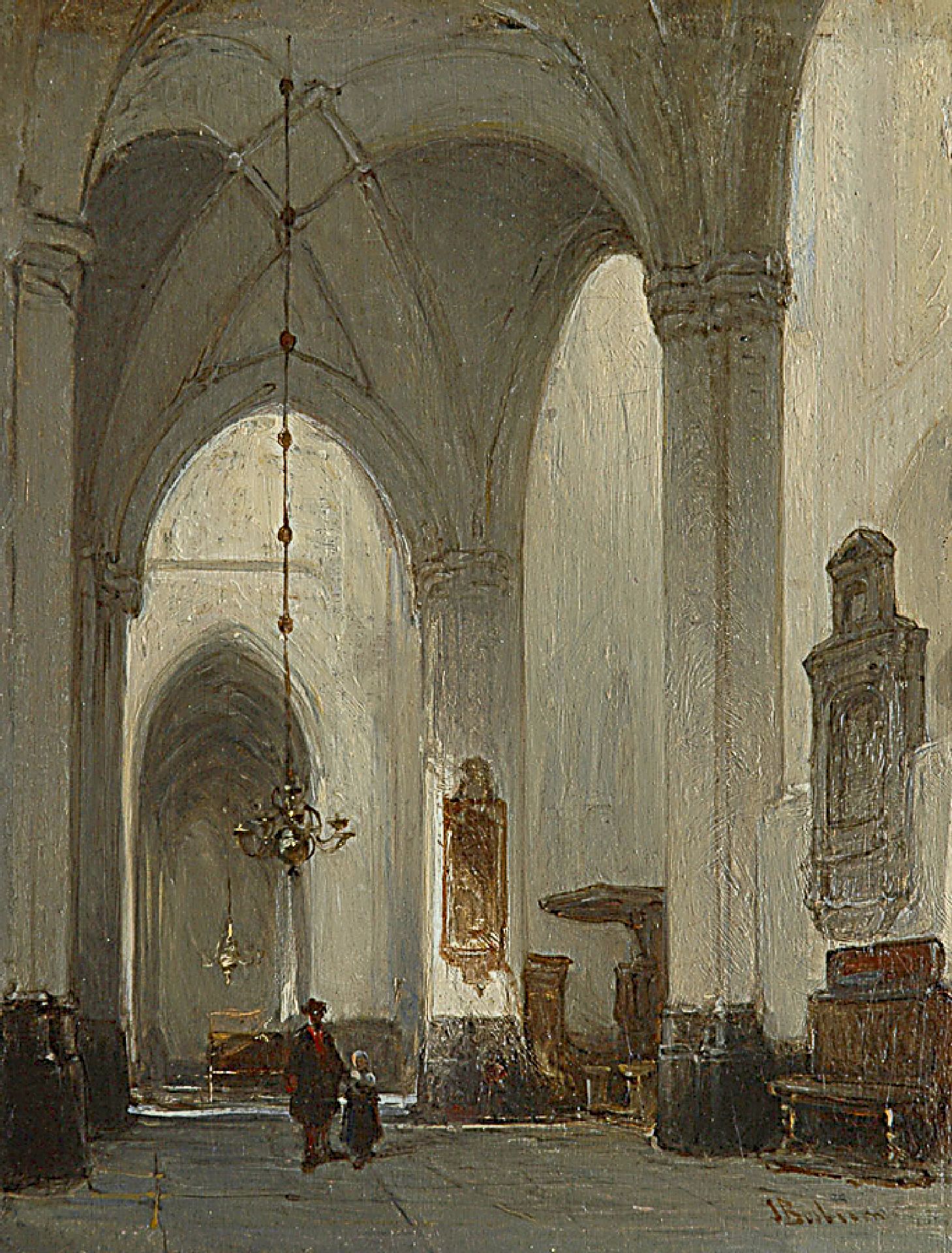Johannes Bosboom werd in 1817 geboren in Den Haag en ging in de leer bij de stadsgezichtenschilder Bart van Hove. Al spoedig koos hij het kerkinterieur als zijn specialiteit, daartoe aangemoedigd door de lof van zijn tijdgenoten. Zijn aquarellen en schilderijen tonen verstilde kerkinterieurs, bevolkt door figuren in 17e-eeuwse kledij. Als 'Haagse Scholer' probeerde hij de indrukken weer te geven die het gebouw op hem maakte. Daarnaast was hij geïnspireerd door de lichtval en atmosfeer in het werk van de 17e-eeuwse schilders Rembrandt en Emanuel de Witte.