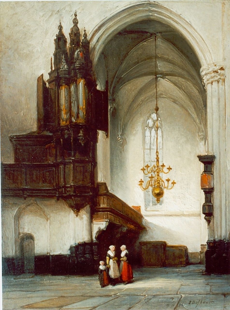 Johannes Bosboom werd in 1817 geboren in Den Haag en ging in de leer bij de stadsgezichtenschilder Bart van Hove. Al spoedig koos hij het kerkinterieur als zijn specialiteit, daartoe aangemoedigd door de lof van zijn tijdgenoten. Zijn aquarellen en schilderijen tonen verstilde kerkinterieurs, bevolkt door figuren in 17e-eeuwse kledij. Als 'Haagse Scholer' probeerde hij de indrukken weer te geven die het gebouw op hem maakte. Daarnaast was hij geïnspireerd door de lichtval en atmosfeer in het werk van de 17e-eeuwse schilders Rembrandt en Emanuel de Witte.