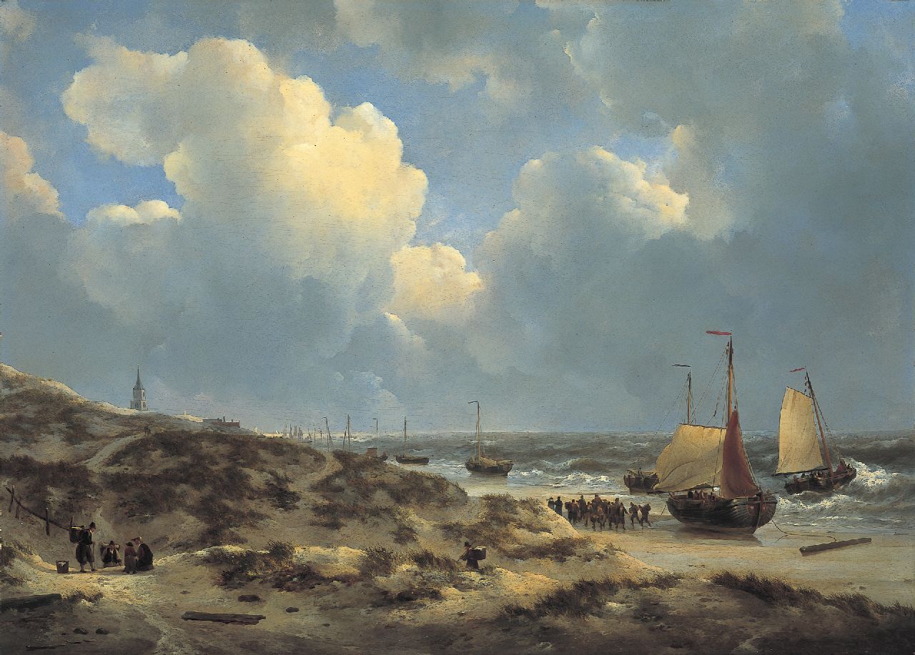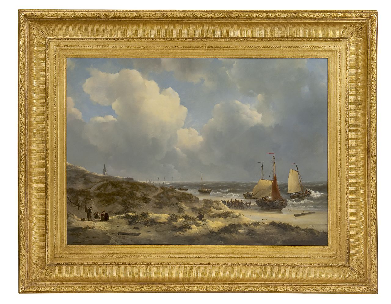 Johannes Christianus Schotel kunstwerk • schilderij • voorheen te koop Het uitladen van de visvangst op het strand van Scheveningen