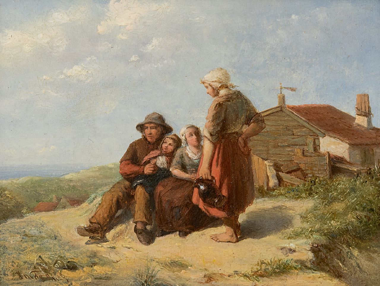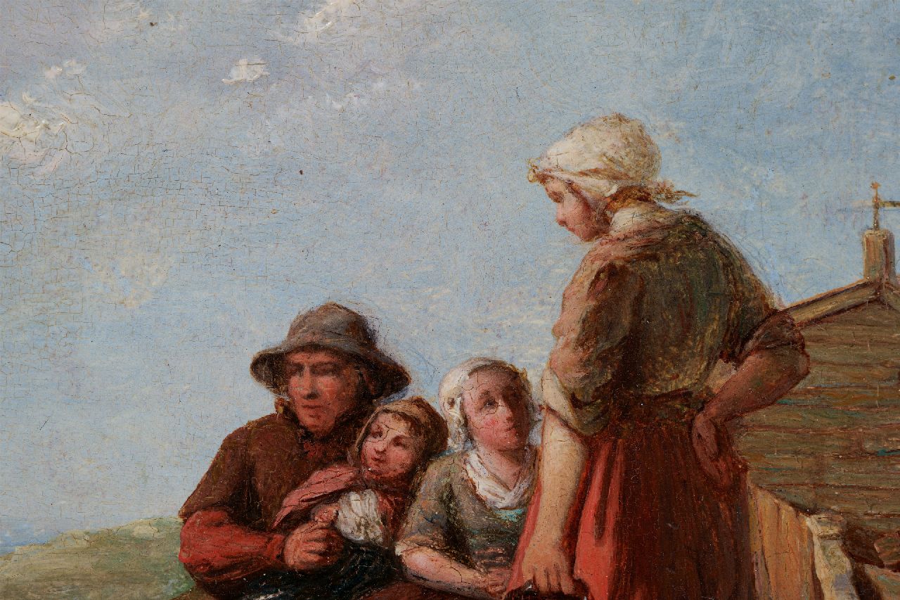 Johannes de Bus kunstwerk • schilderij • voorheen te koop Vissersfamilie in de duinen