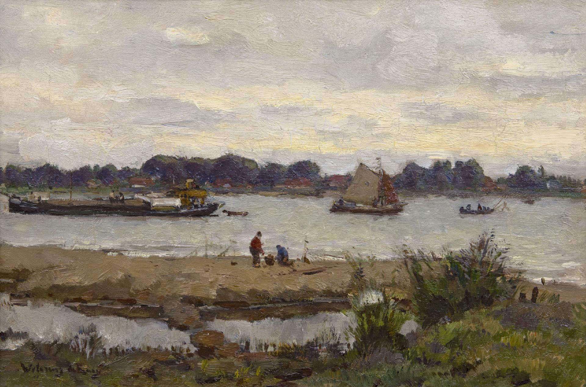 Johannes Embrosius van de Wetering de Rooij kunstwerk • schilderij • voorheen te koop Riviergezicht bij Gorkum