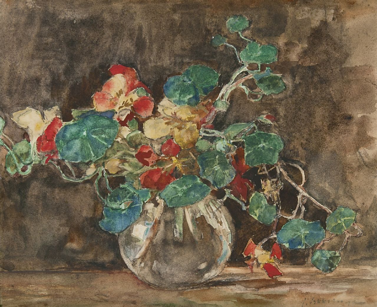Johannes Evert Akkeringa kunstwerk • aquarel • tekening • voorheen te koop Vaas met Oost-Indische kers
