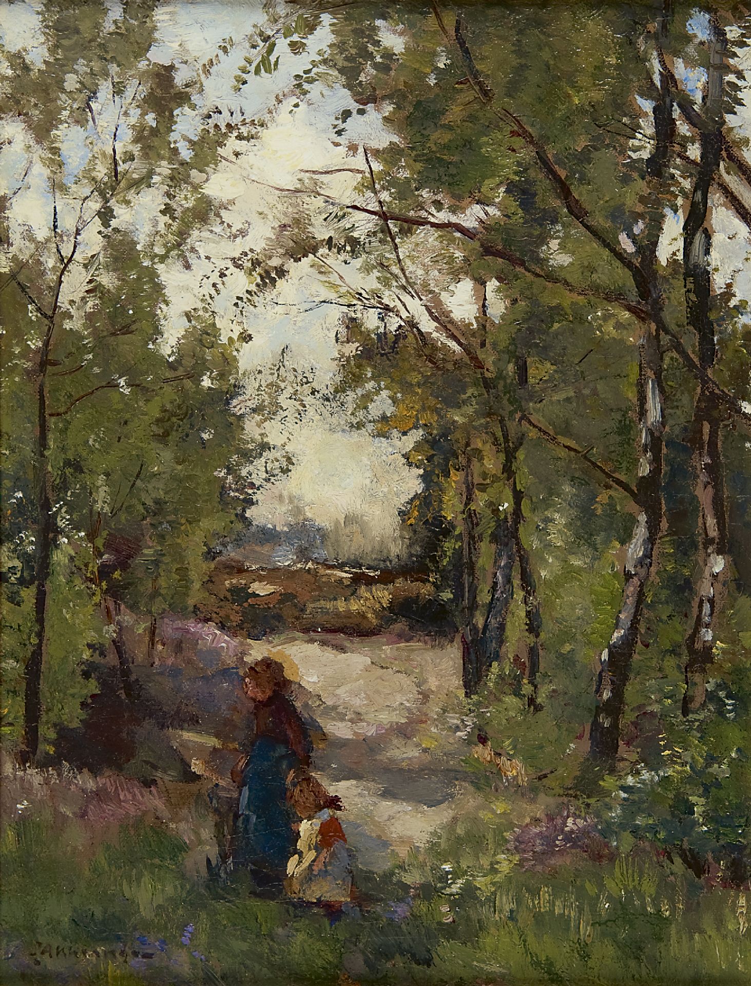 Johannes Evert Akkeringa kunstwerk • schilderij • voorheen te koop Aan de hand van moeder in het bos