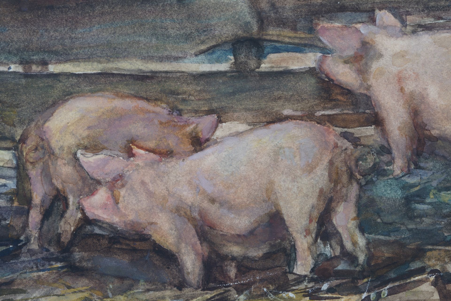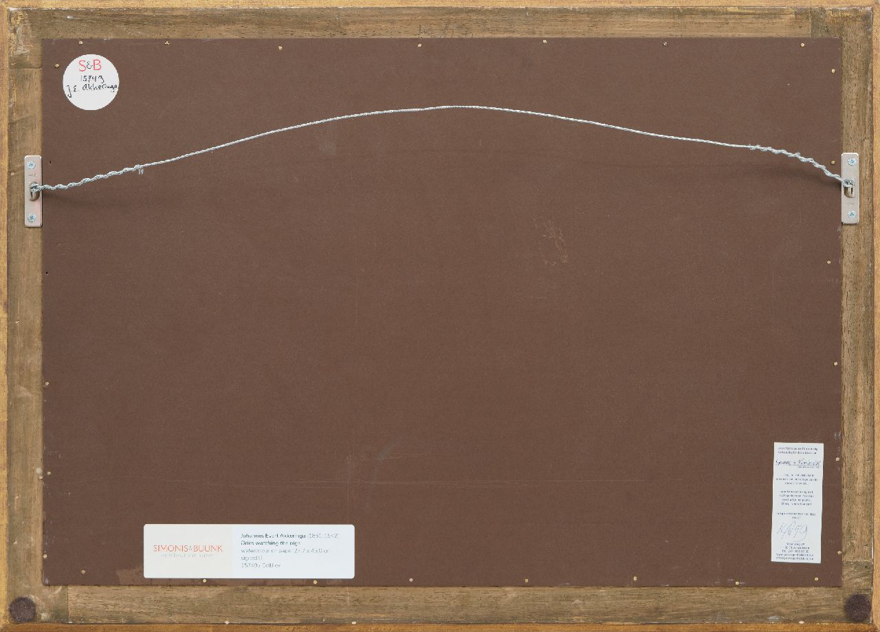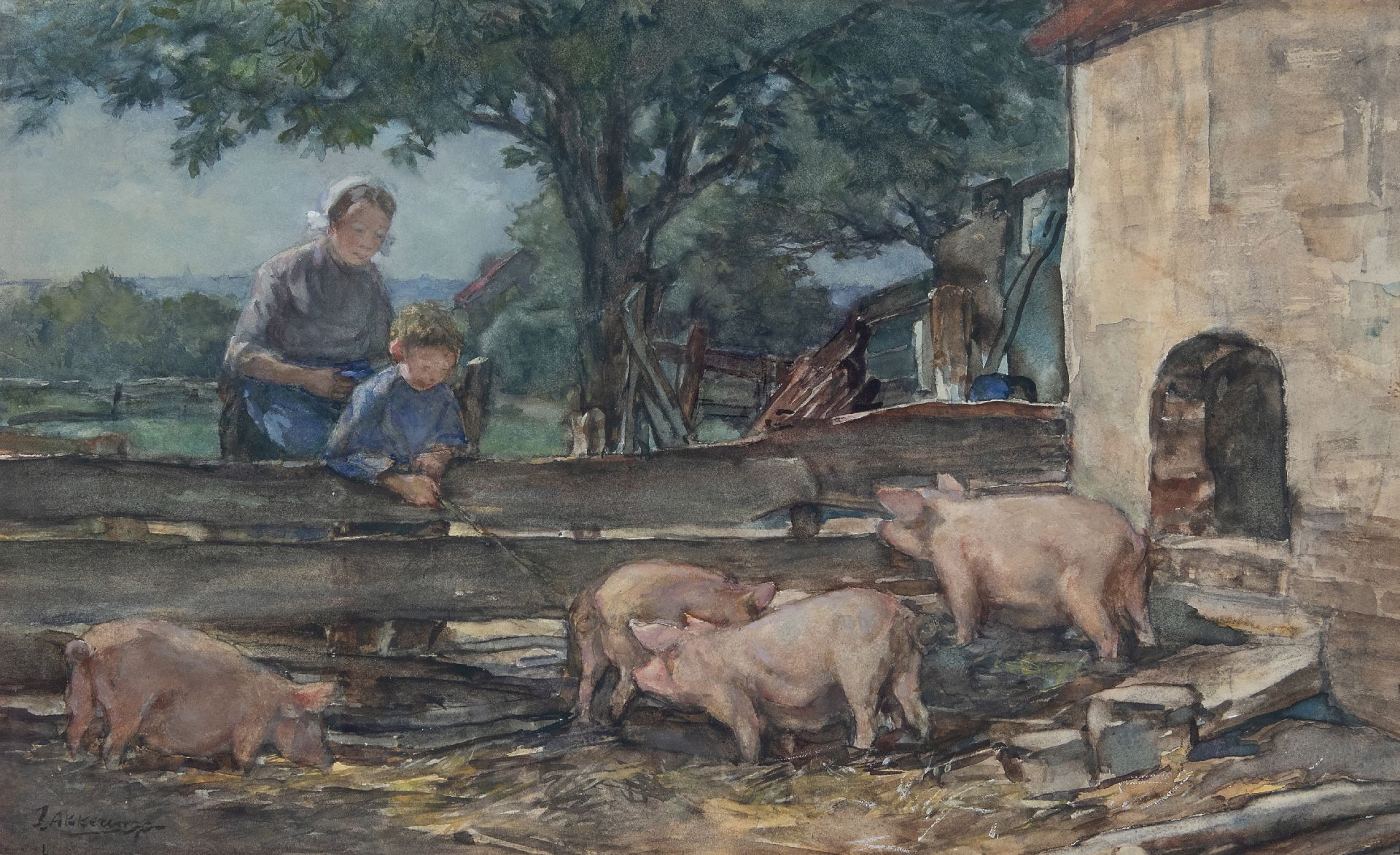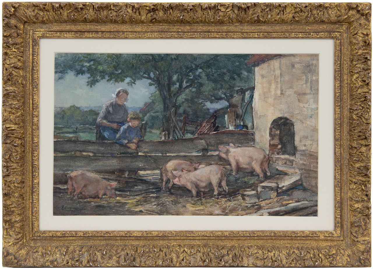 Johannes Evert Akkeringa kunstwerk • aquarel • tekening • te koop Dries bij de varkens