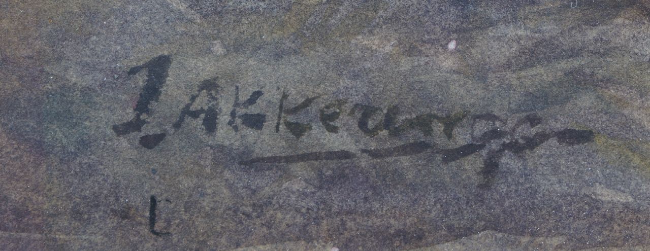 Johannes Evert Akkeringa schilderde prachtige stillevens met bloemen, maar is vooral bekend geworden door zijn zonnige duin- en strandgezichten bevolkt door vissersvrouwen en kinderen. Het zijn vaak blijmoedige Hollandse tafereeltjes, de vrouwen vredig werkend, de kinderen spelend in het zand onder een blauwe lucht met hoge bewolking. Ook schilderde hij deftige Haagse kinderen spelend in de duinen of op het strand. Akkeringa wordt tot de late Haagse School gerekend.