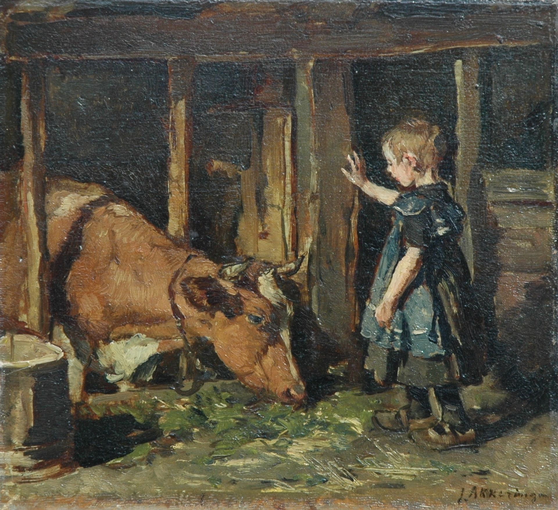 Johannes Evert Akkeringa kunstwerk • schilderij • voorheen te koop In de koestal
