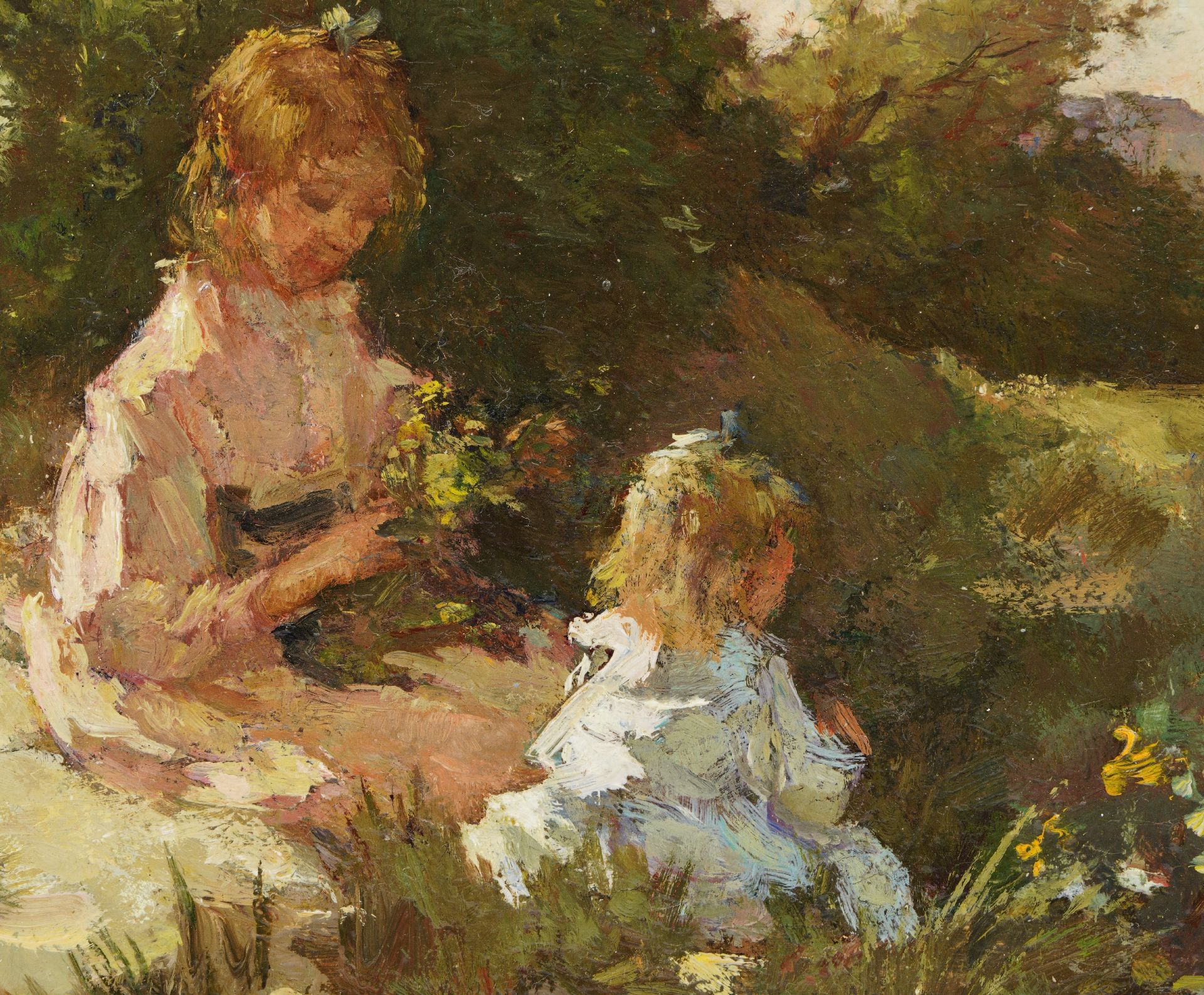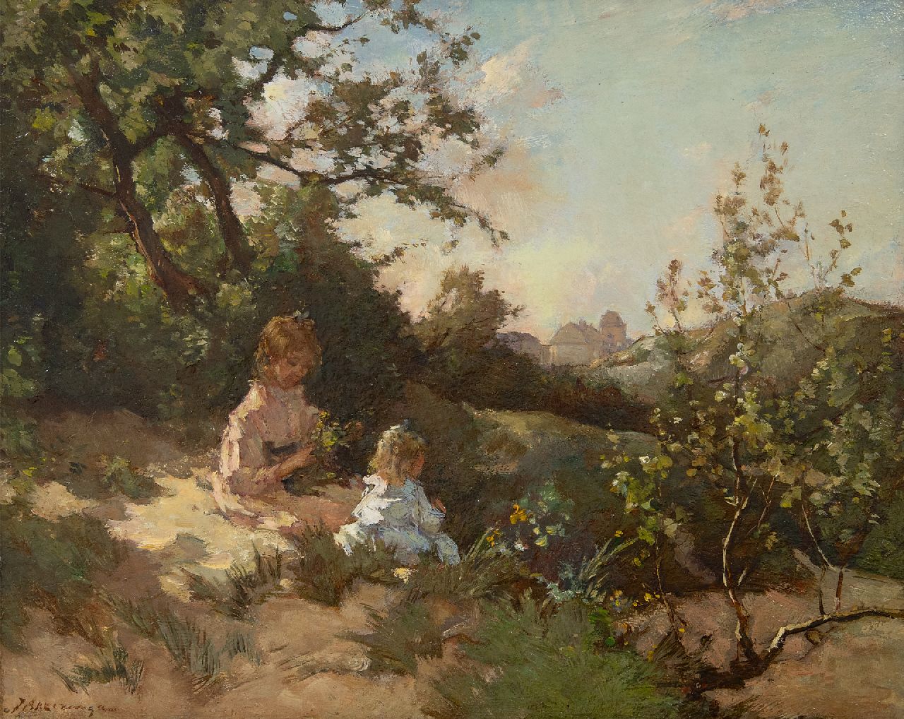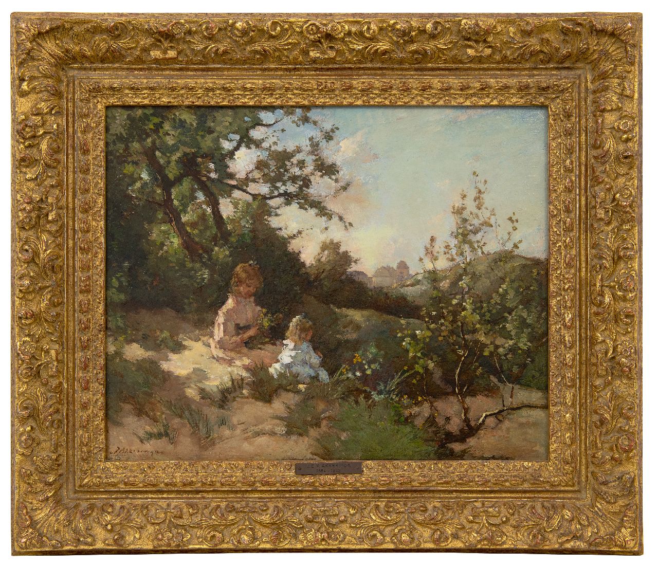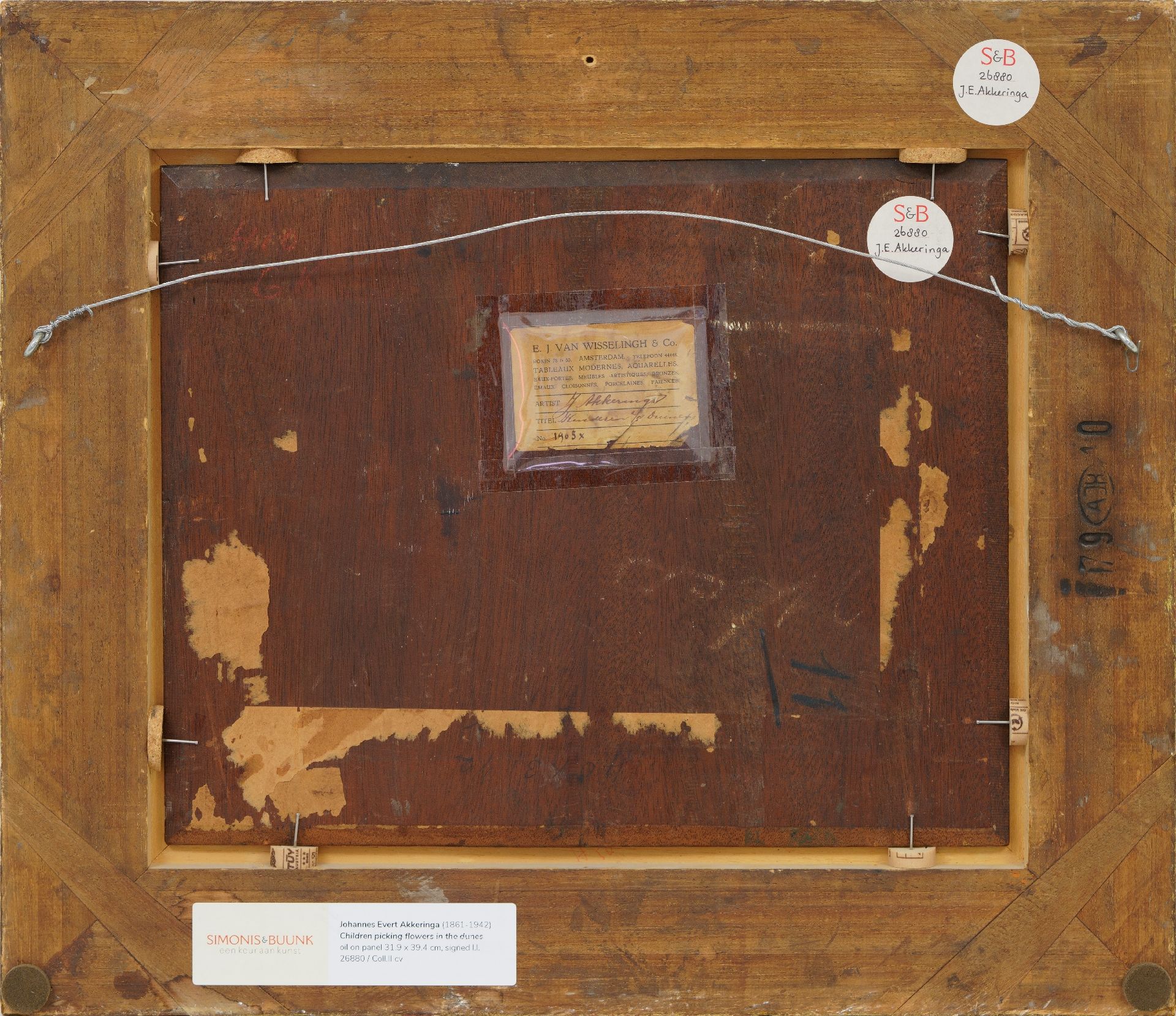 Johannes Evert Akkeringa kunstwerk • schilderij • te koop Kinderen bloemen plukkend in de duinen