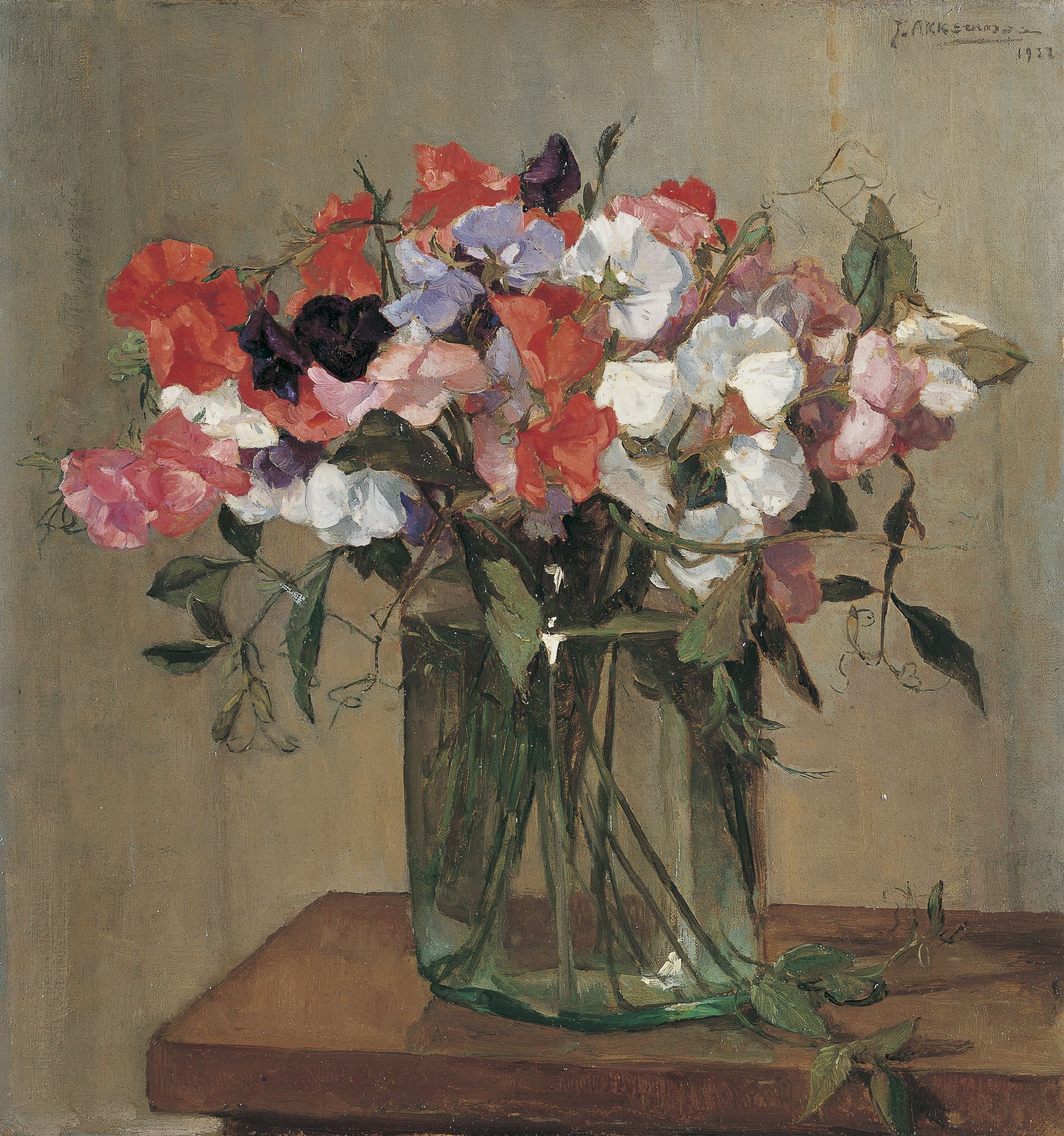 Johannes Evert Akkeringa kunstwerk • schilderij • voorheen te koop Lathyrus in een glazen pot