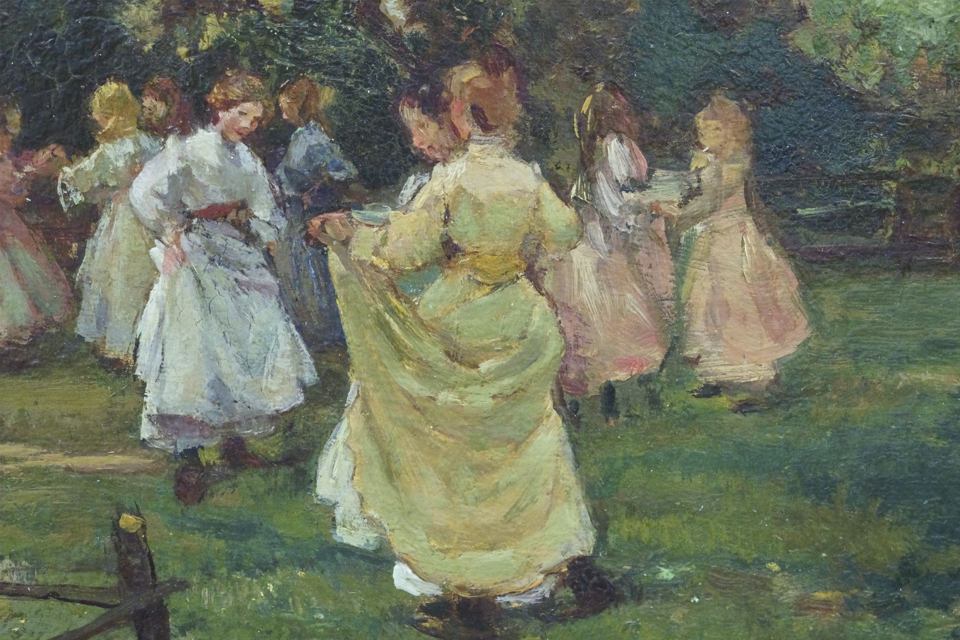 Johannes Evert Akkeringa | Theetuin, olieverf op paneel, 17,4 x 24,6 cm, gesigneerd r.o.