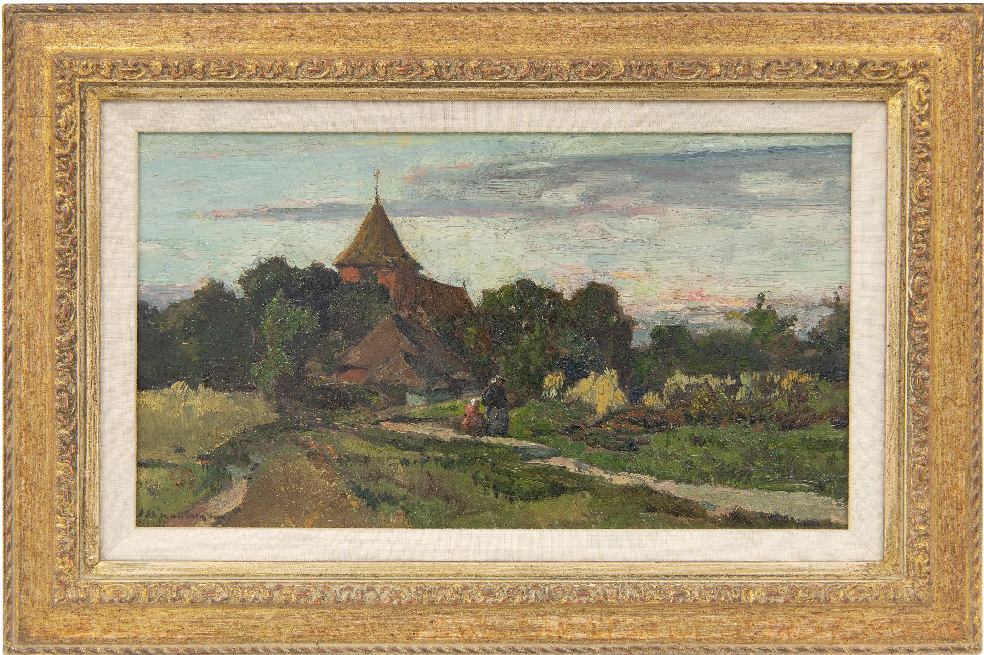 Johannes Evert Akkeringa kunstwerk • schilderij • voorheen te koop Moeder en kind op een dorpspad