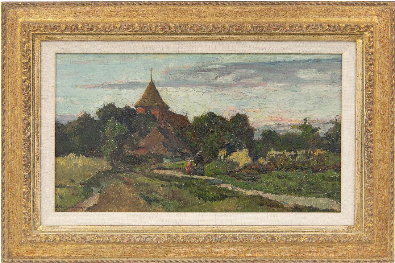 olieverf op paneel 17,4 x 32,5 cm, gesigneerd linksonder