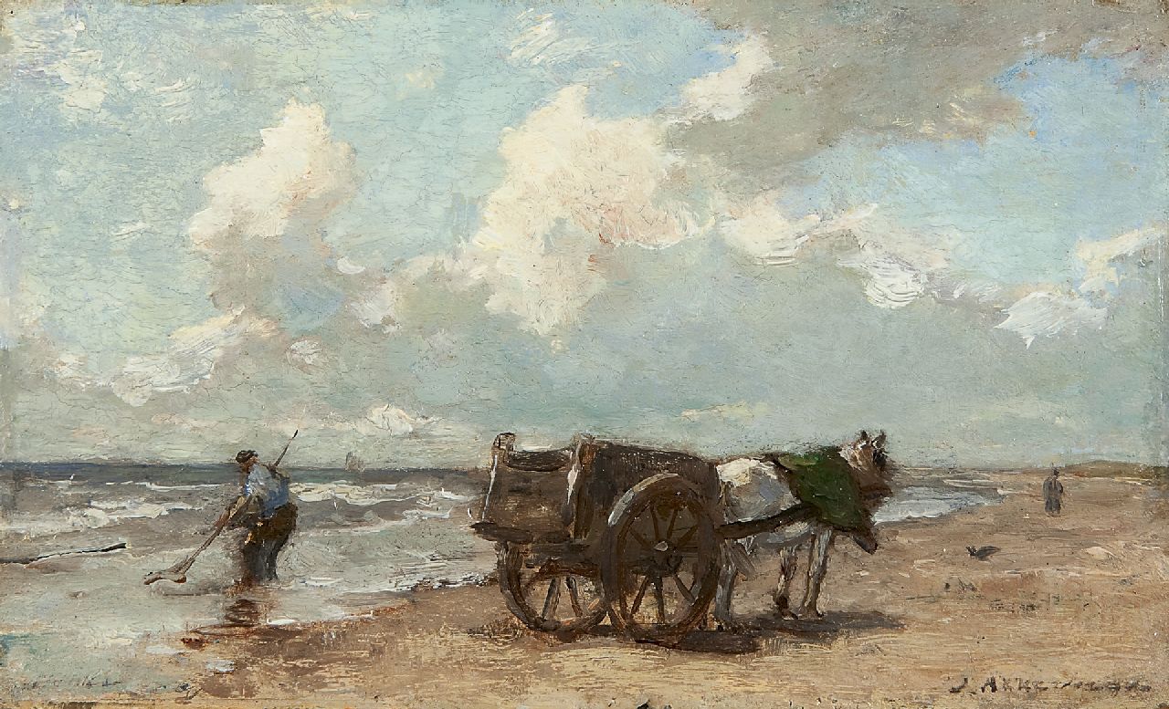 Johannes Evert Akkeringa kunstwerk • schilderij • voorheen te koop Schelpenvisser in de branding