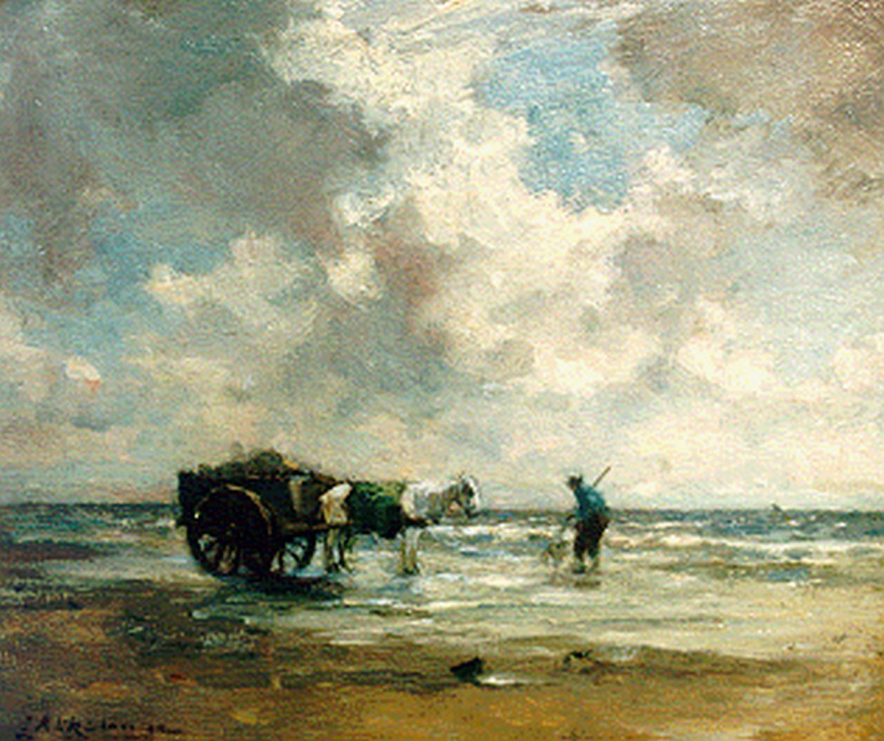 Johannes Evert Akkeringa kunstwerk • schilderij • voorheen te koop Schelpenvissers