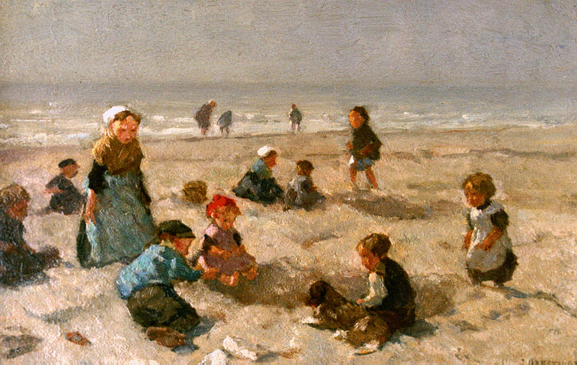 Johannes Evert Akkeringa kunstwerk • schilderij • voorheen te koop Spelende kinderen op het strand
