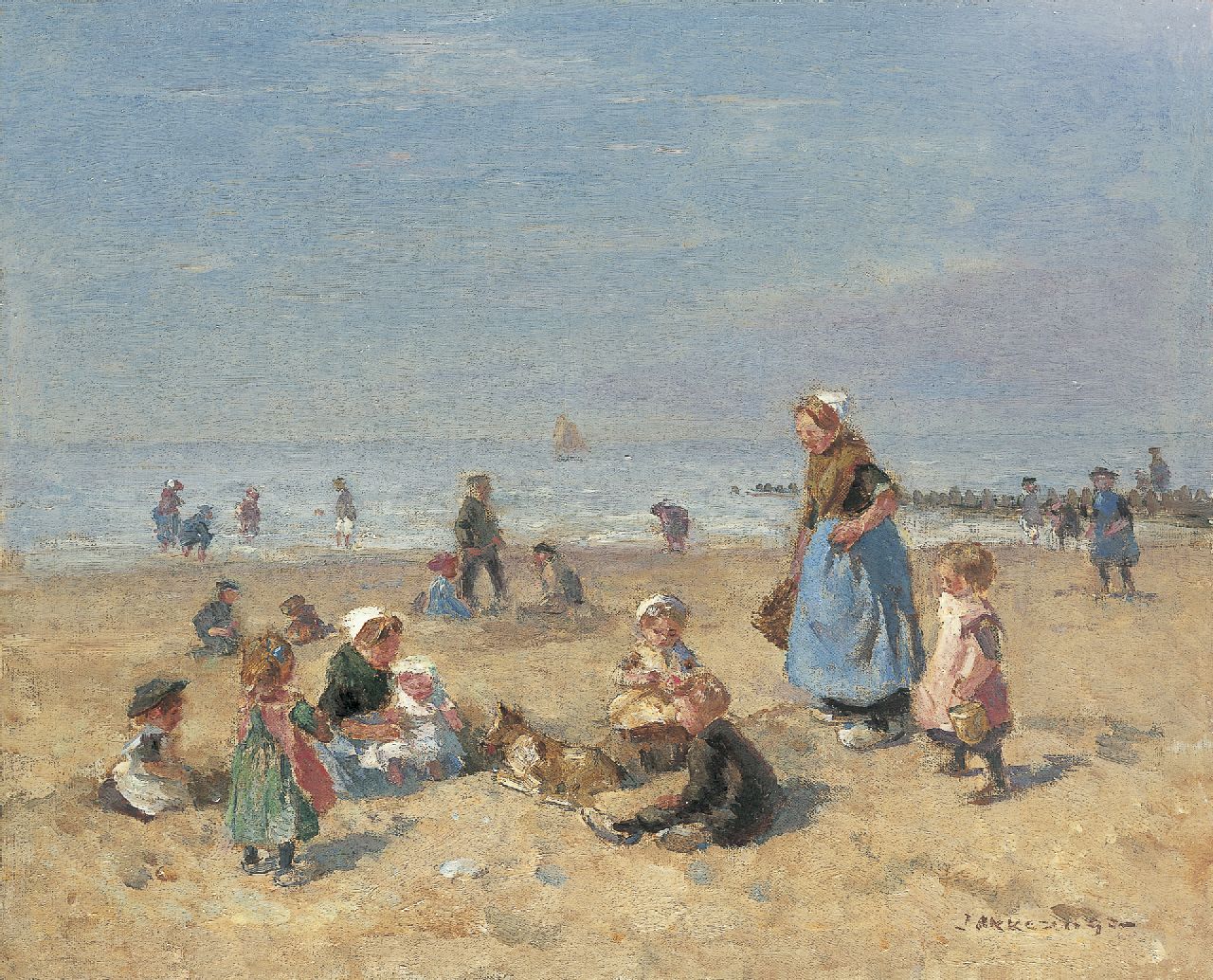 Johannes Evert Akkeringa kunstwerk • schilderij • voorheen te koop Spelende kinderen op het strand