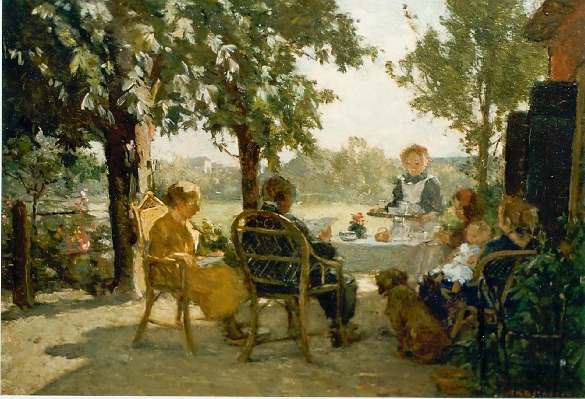 Johannes Evert Akkeringa kunstwerk • schilderij • voorheen te koop Theetuintje