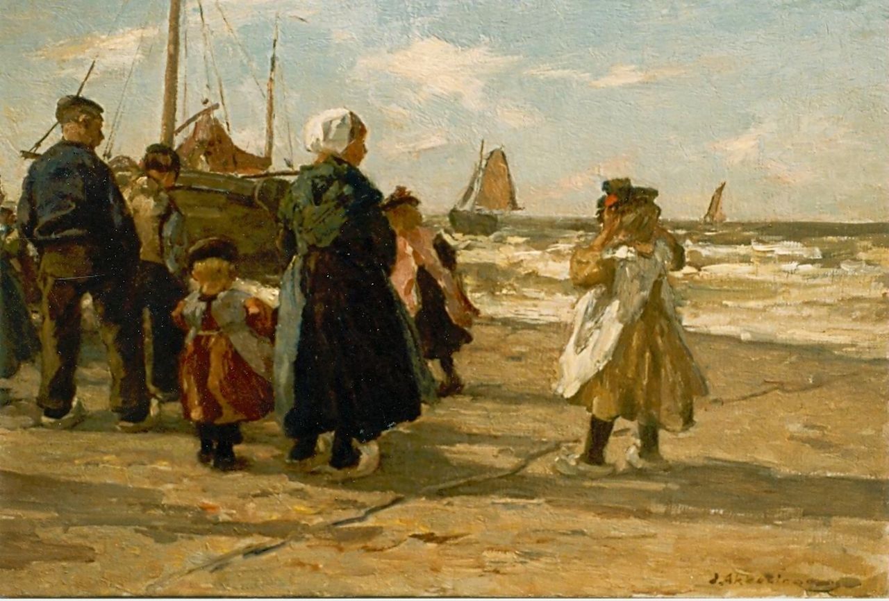 Johannes Evert Akkeringa kunstwerk • schilderij • voorheen te koop Vissers op het strand