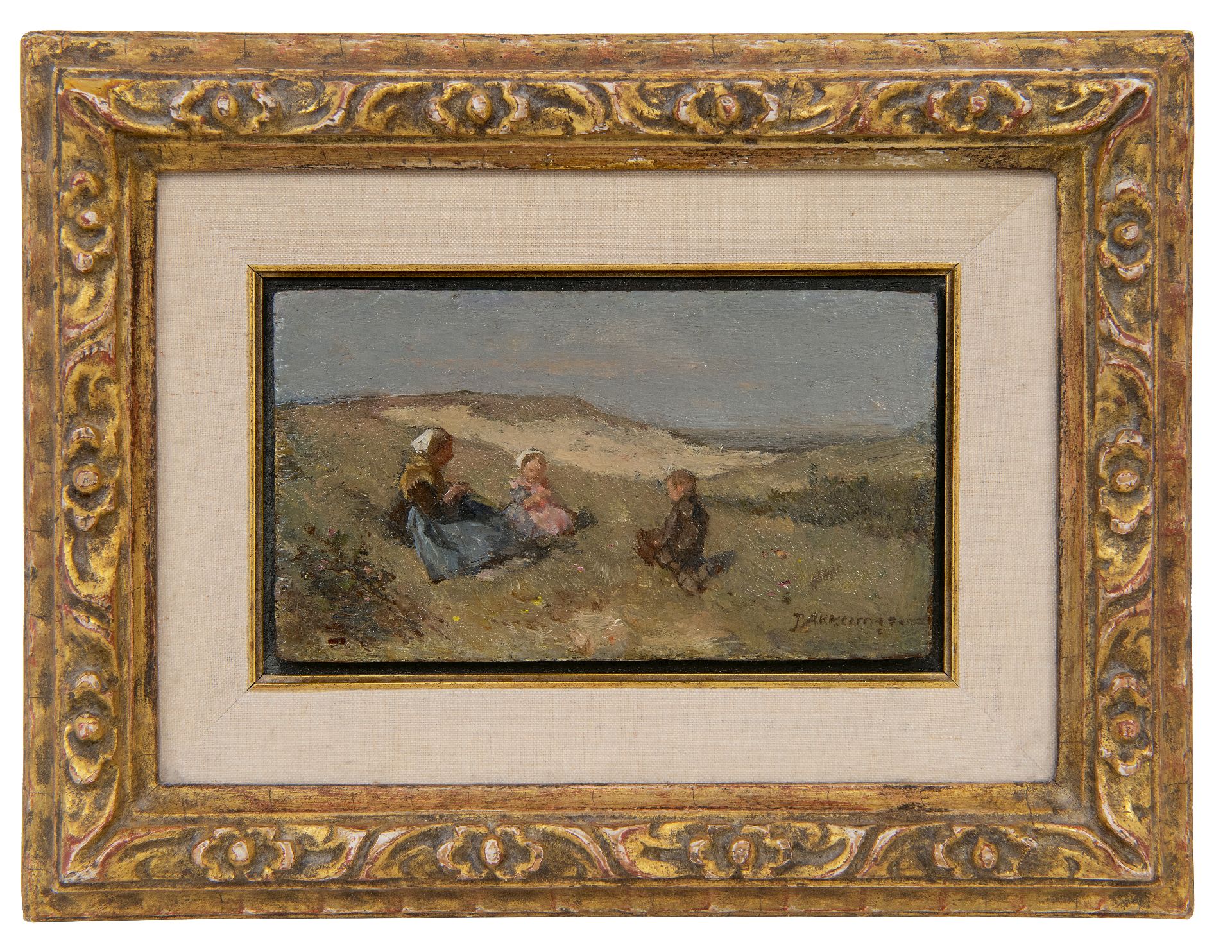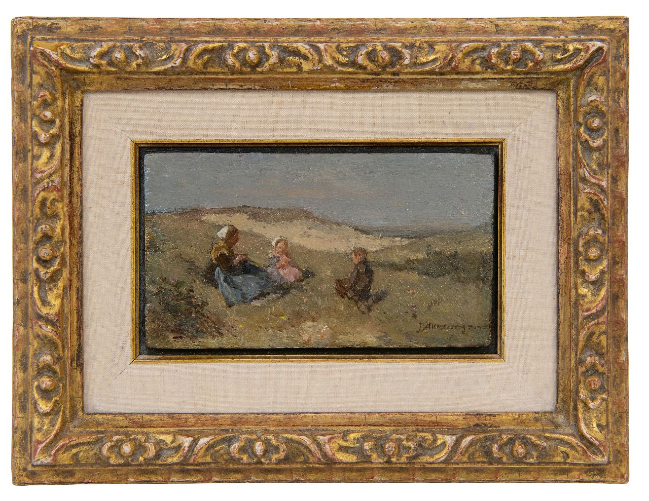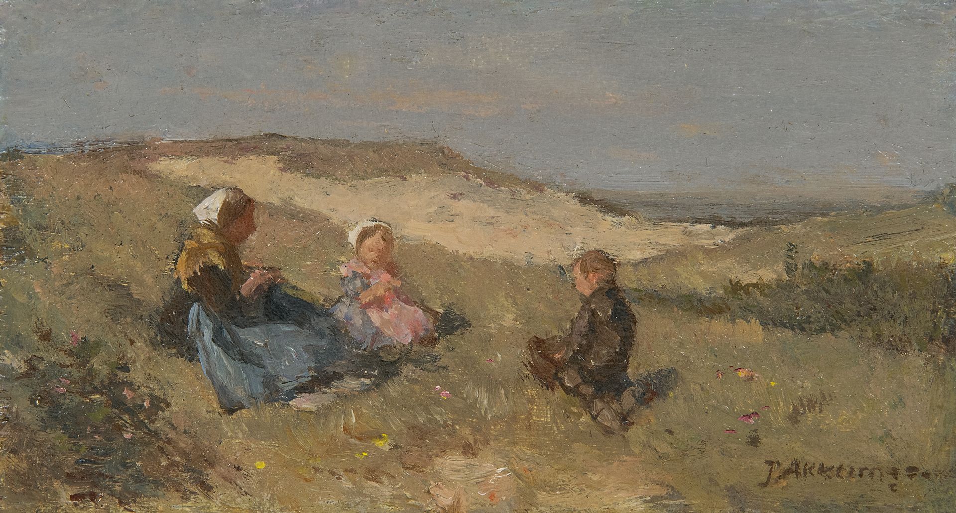 Johannes Evert Akkeringa kunstwerk • schilderij • voorheen te koop Vissersvrouw met twee kinderen in de duinen