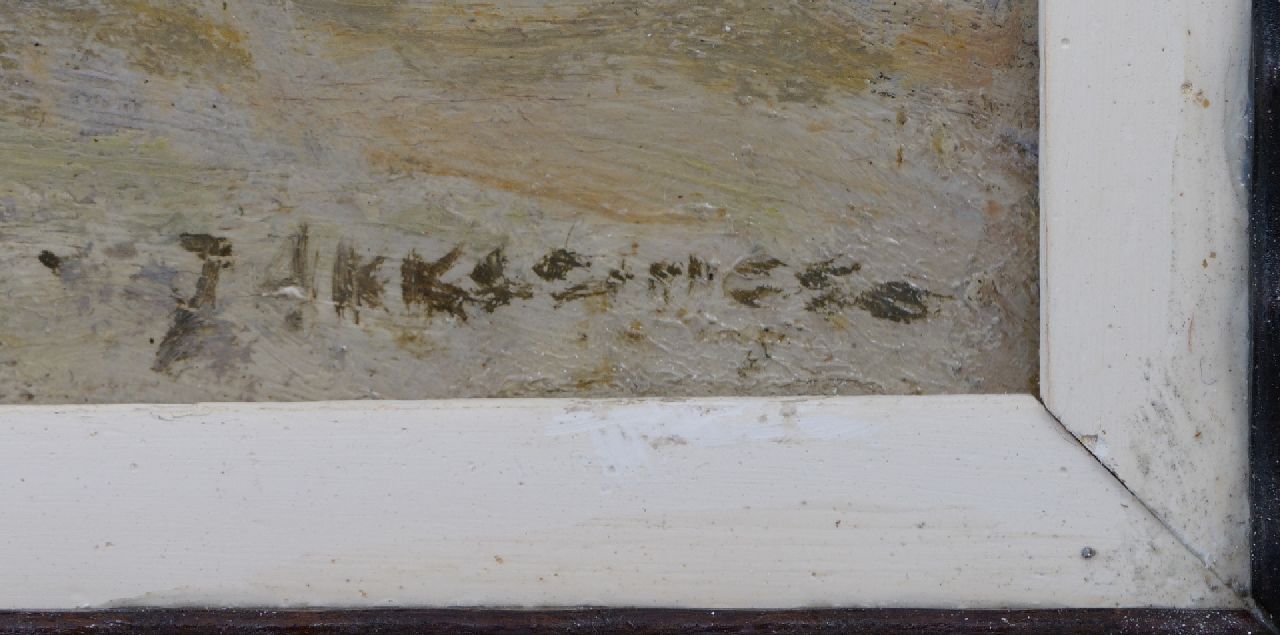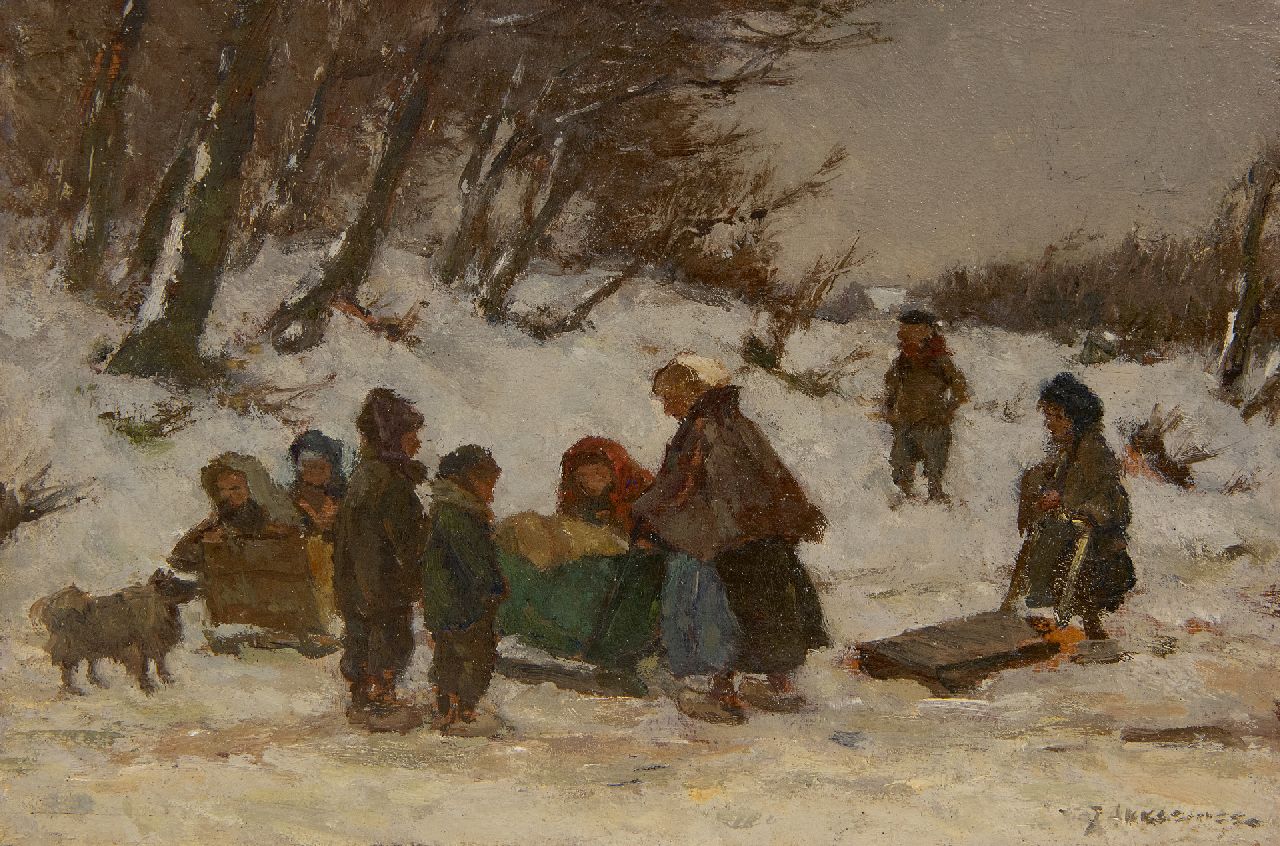 Johannes Evert Akkeringa kunstwerk • schilderij • te koop Winterse wandeling met het kindje in de slee