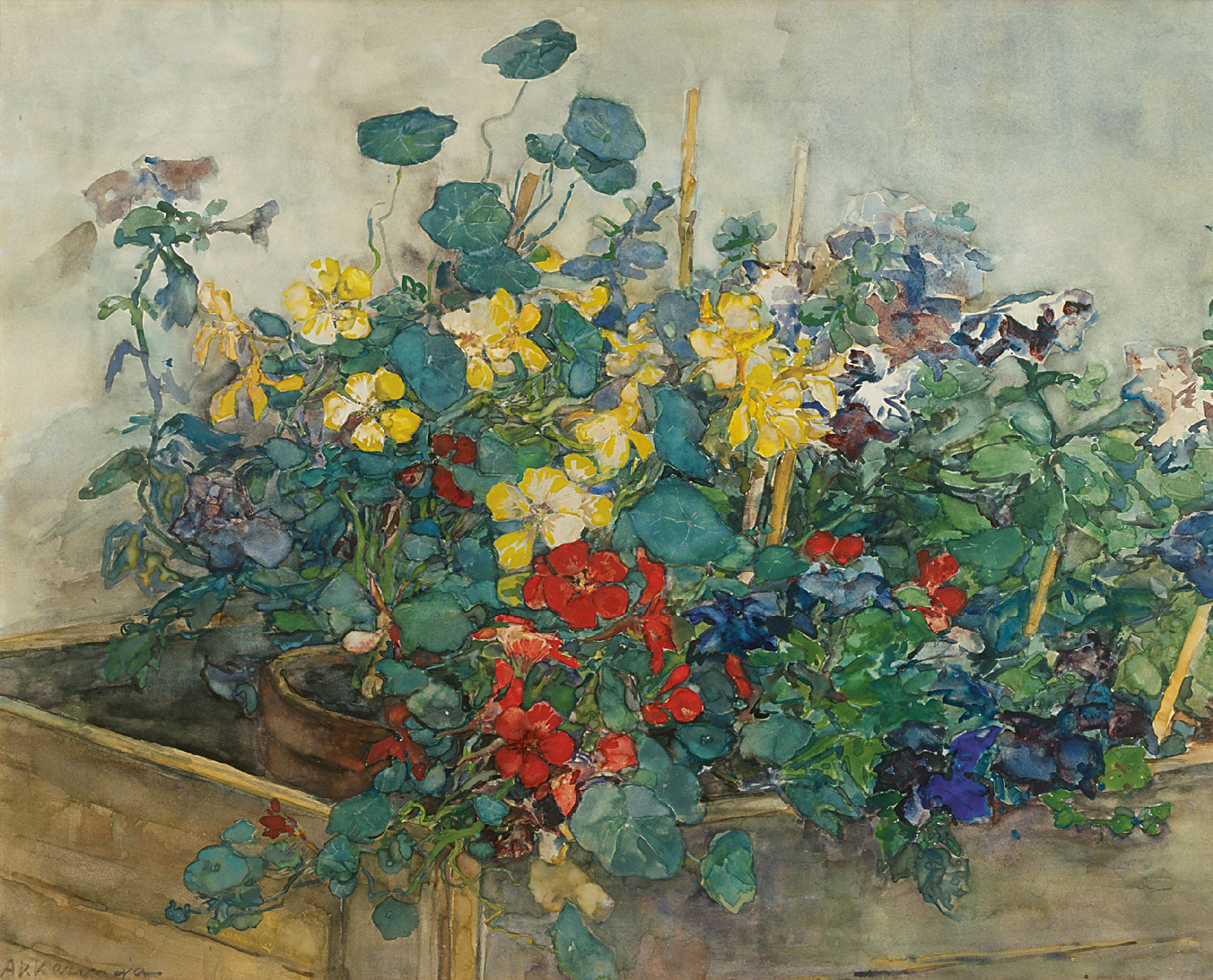 aquarel en gouache op papier 54,1 x 67,0 cm, gesigneerd linksonder