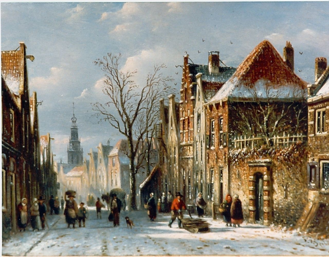 Johannes Franciscus Spohler kunstwerk • schilderij • voorheen te koop Bedrijvigheid in Hollands stadje