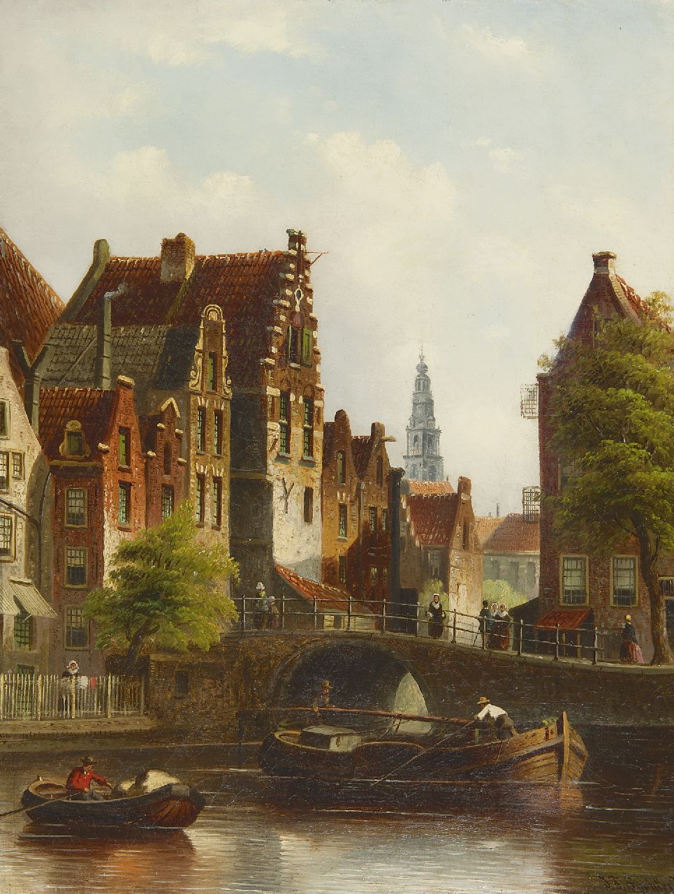 Johannes Franciscus Spohler kunstwerk • schilderij • voorheen te koop Gezicht op de Grimnessesluis, Amsterdam
