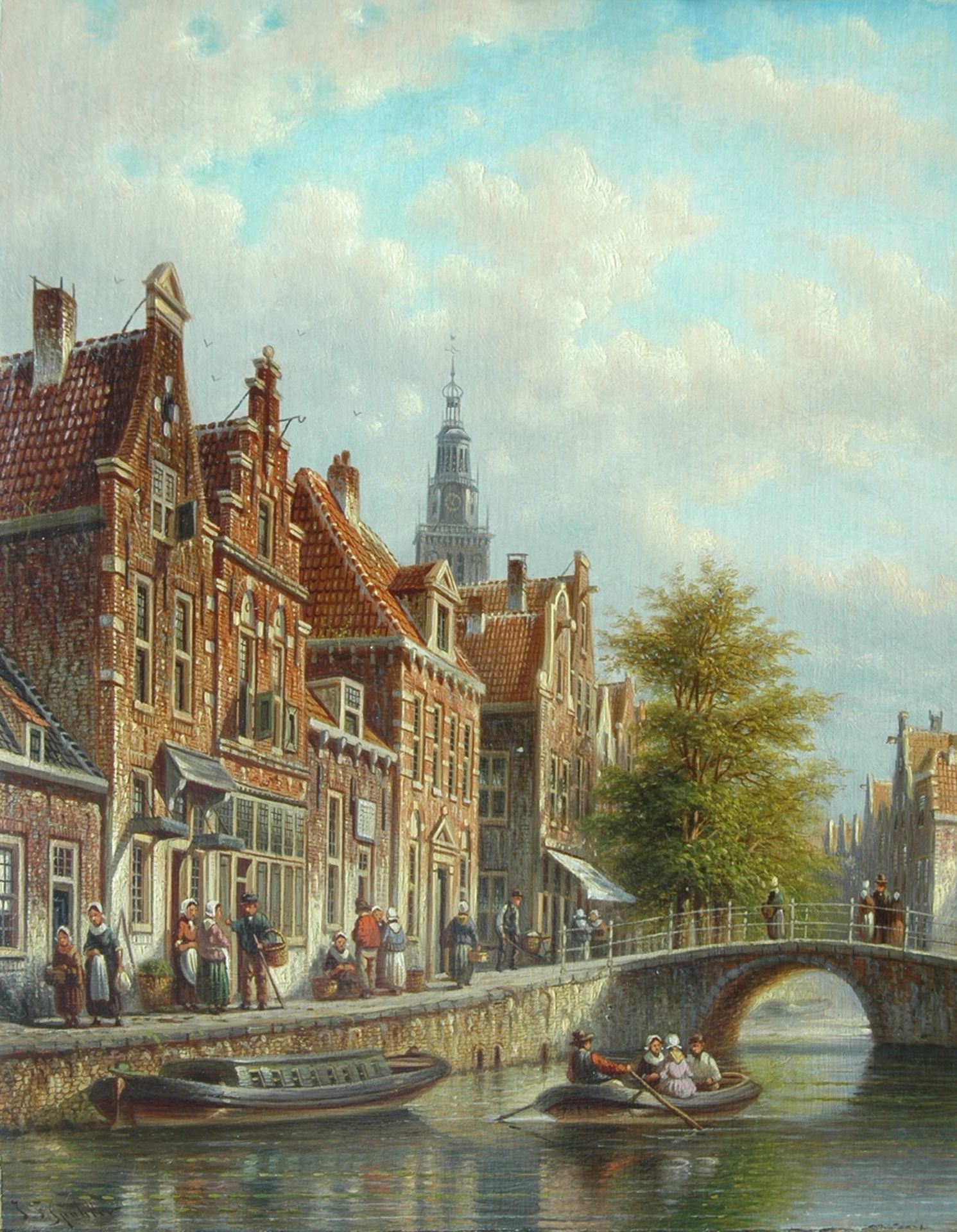 Johannes Franciscus Spohler kunstwerk • schilderij • voorheen te koop Hollands grachtje met de toren van de Waag, Alkmaar