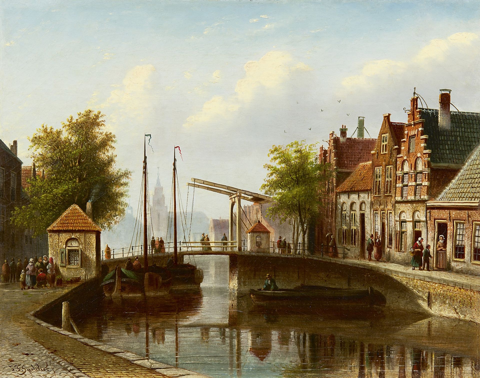 Johannes Franciscus Spohler kunstwerk • schilderij • voorheen te koop Hollands grachtje met ophaalbrug