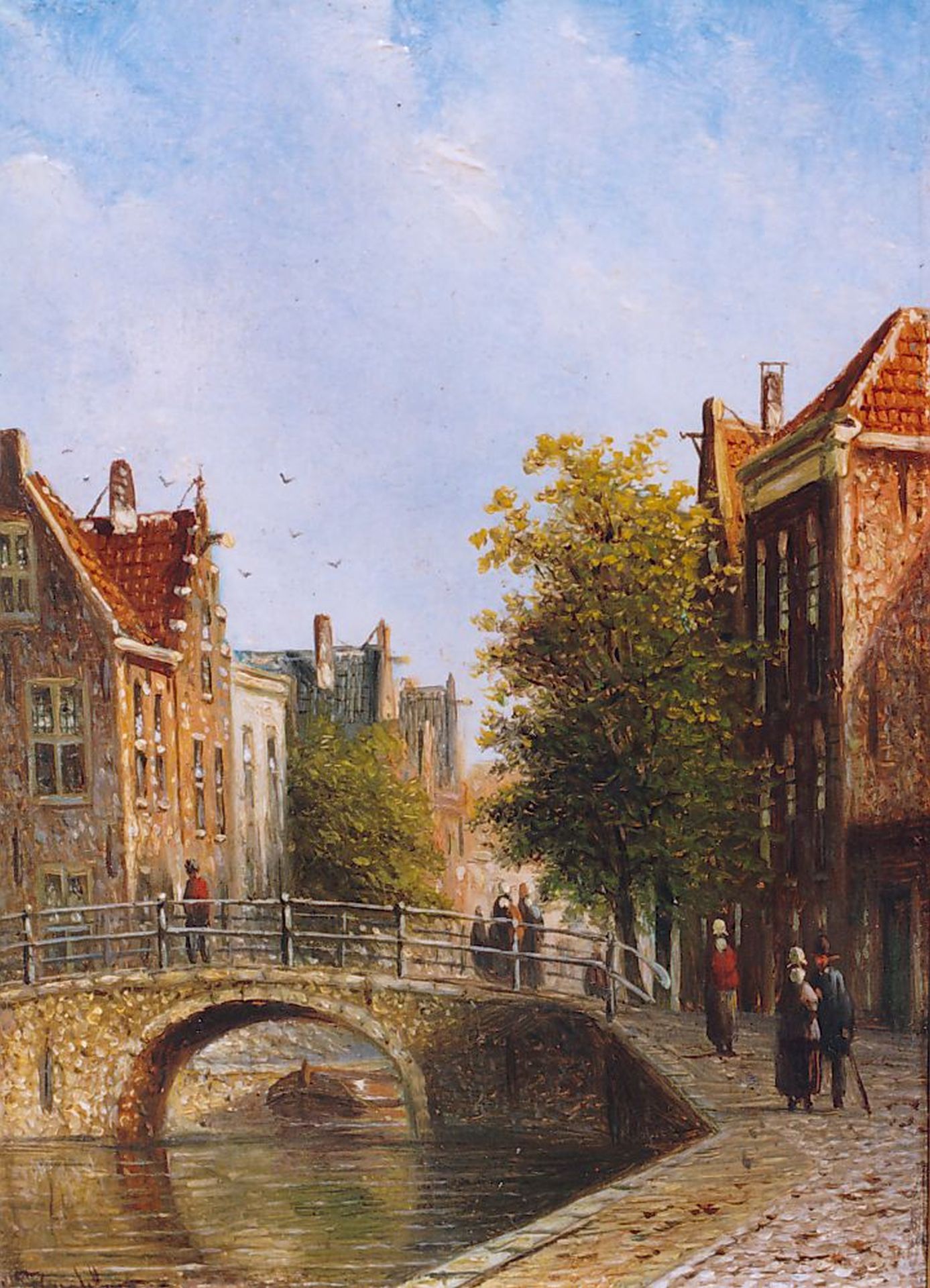 Johannes Franciscus Spohler kunstwerk • schilderij • voorheen te koop Oud-Hollands stadsgezichtje