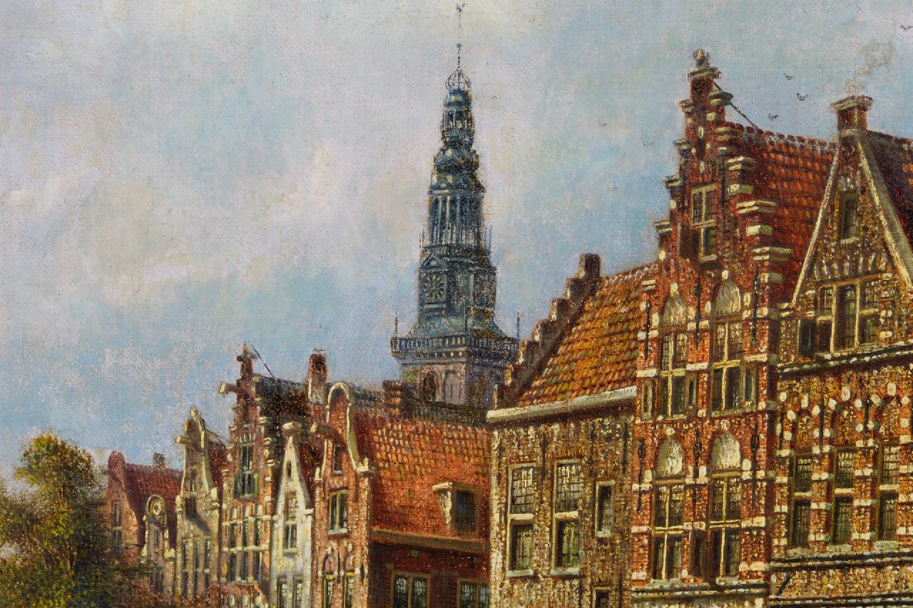 Johannes Franciscus Spohler kunstwerk • schilderij • te koop Stadsgezicht met de Amsterdamse Oudekerkstoren