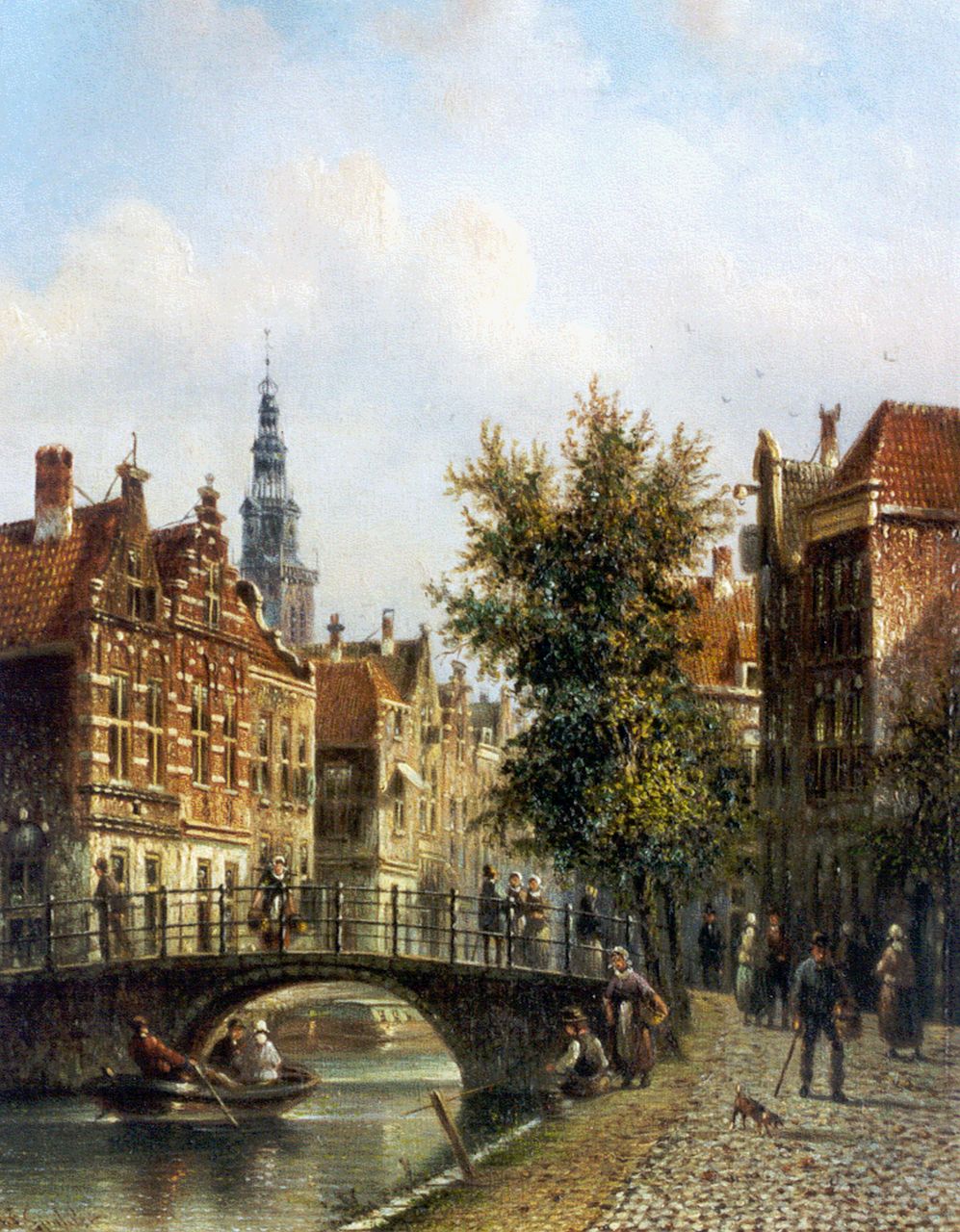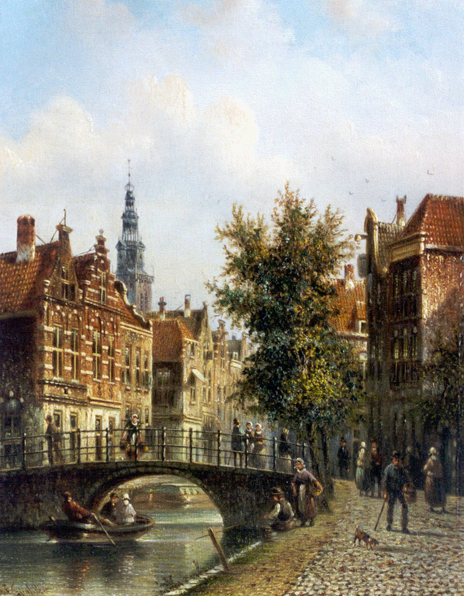 Johannes Franciscus Spohler kunstwerk • schilderij • voorheen te koop Stadsgezicht met de Oude Kerk in Amsterdam