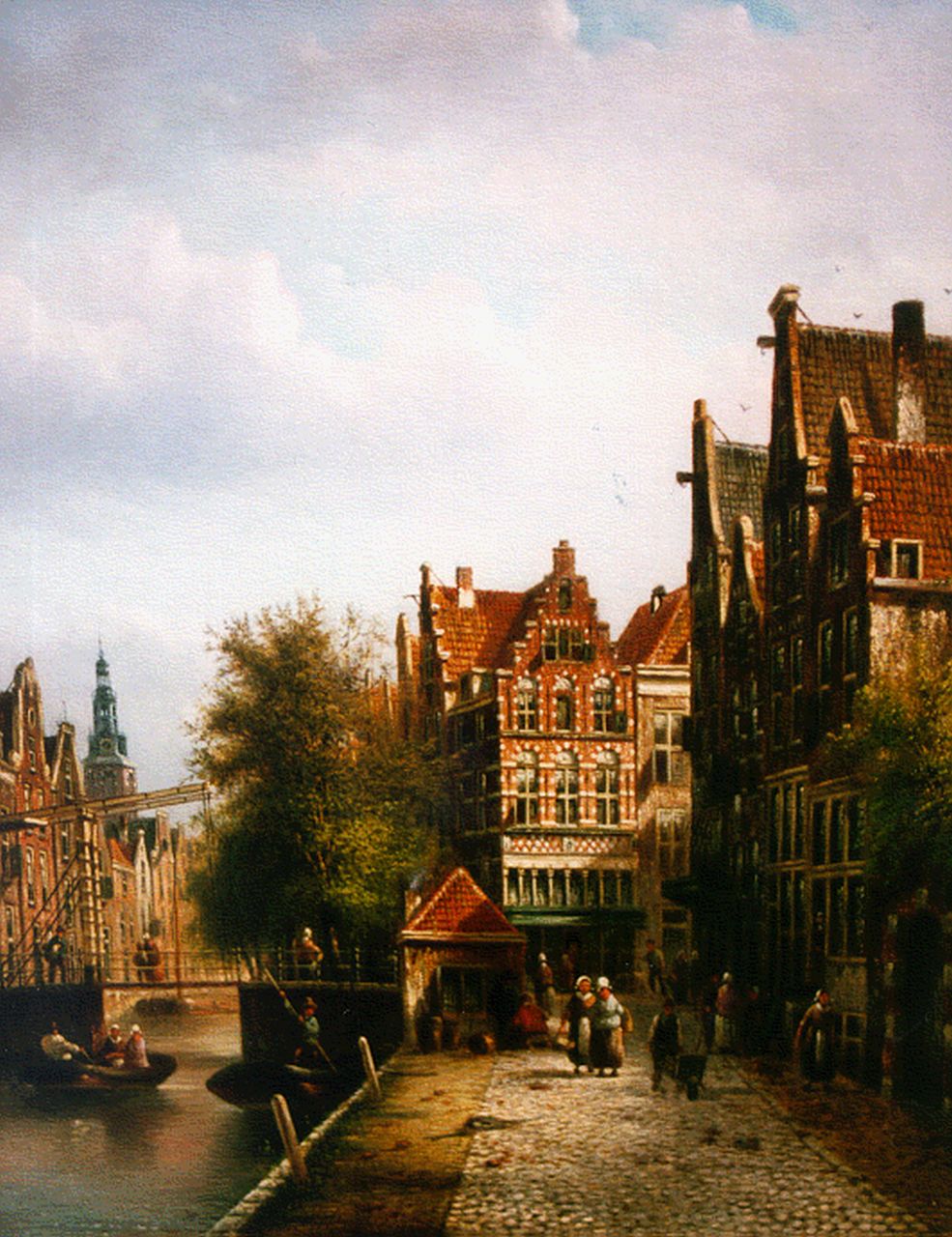 Johannes Franciscus Spohler kunstwerk • schilderij • voorheen te koop Stadsgezicht met gracht