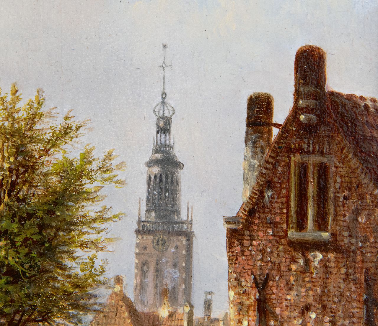 Johannes Franciscus Spohler kunstwerk • schilderij • te koop Zomers stadsgezicht met de toren van de Haarlemse Bakenesserkerk (pendant van winter)
