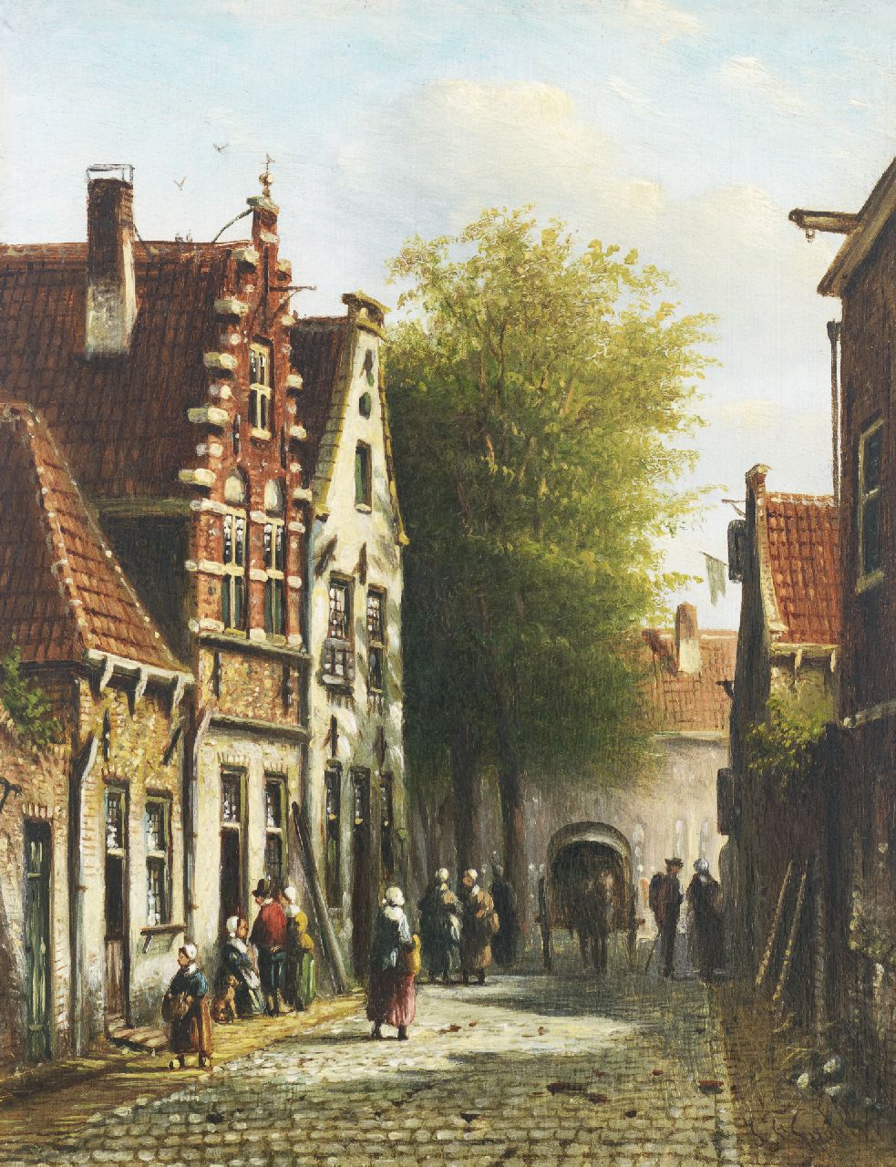 Johannes Franciscus Spohler kunstwerk • schilderij • voorheen te koop Zomers straatje met figuren en paard en wagen