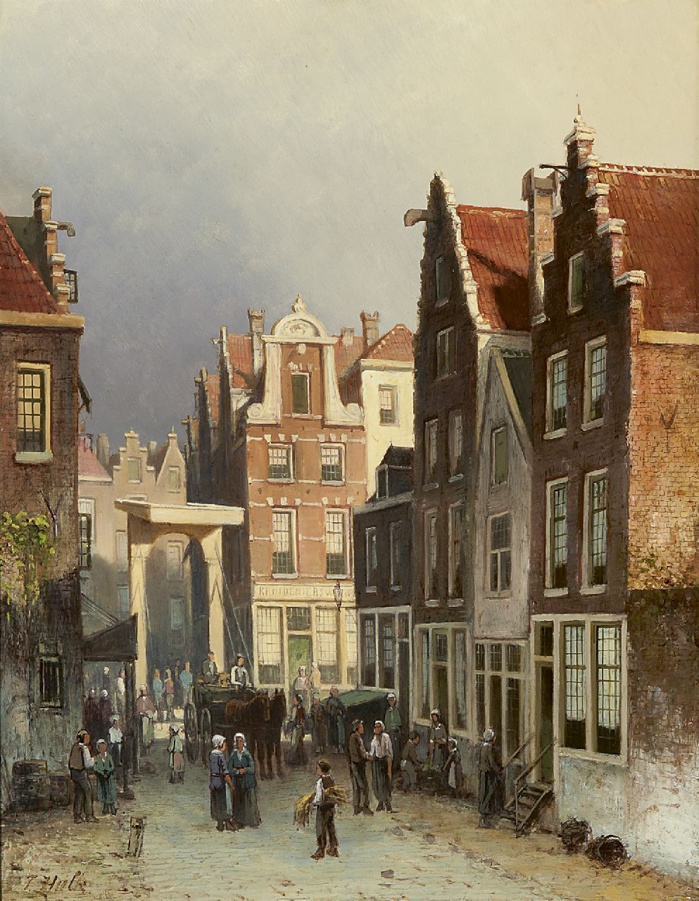 Johannes Frederik Hulk kunstwerk • schilderij • voorheen te koop Hollands straatje met ophaalbrug
