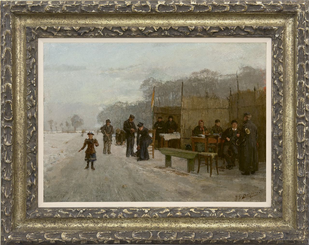 Johannes Gerardus Heijberg kunstwerk • schilderij • te koop Bij de koek-en-zopietent op het ijs