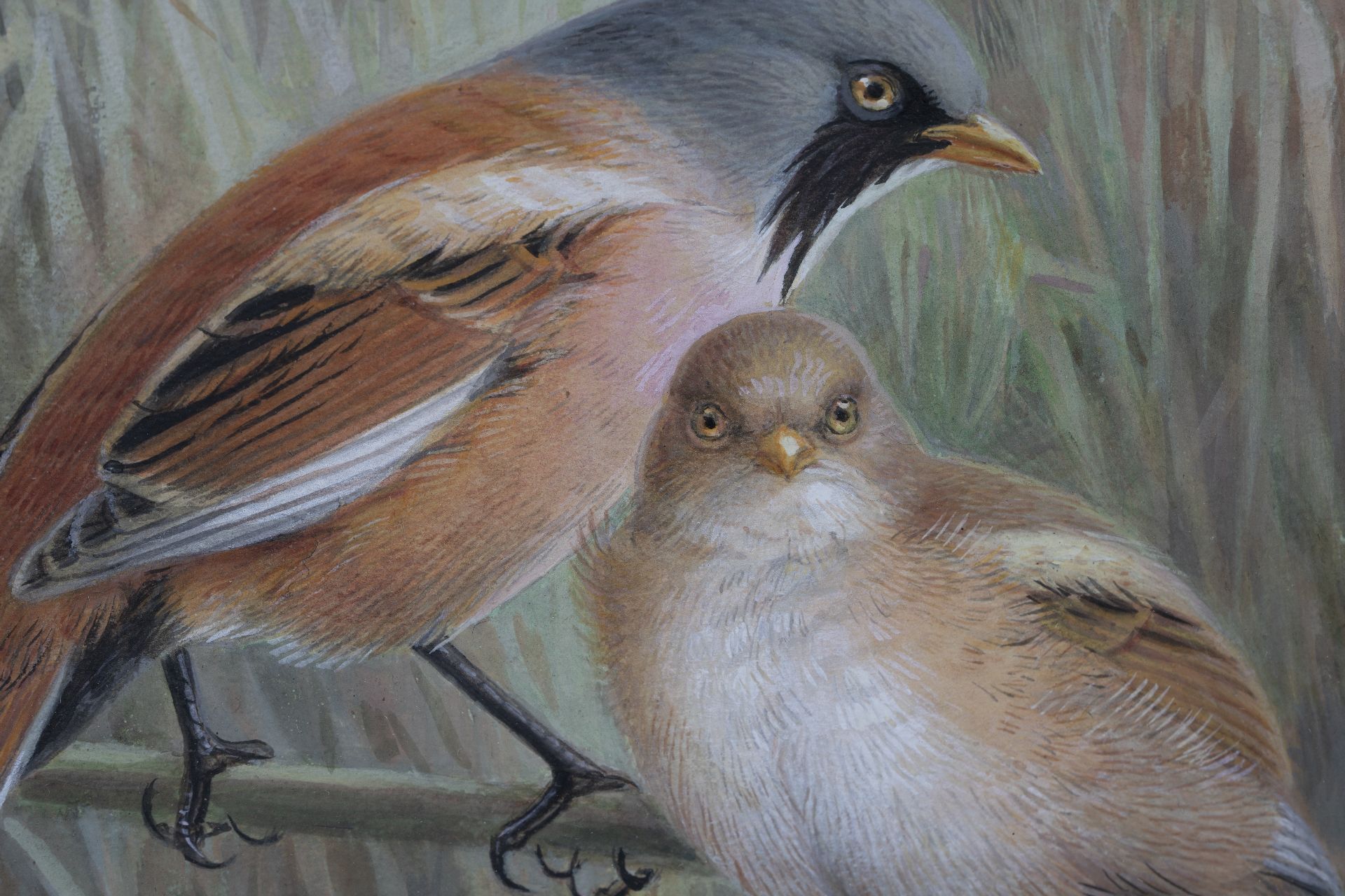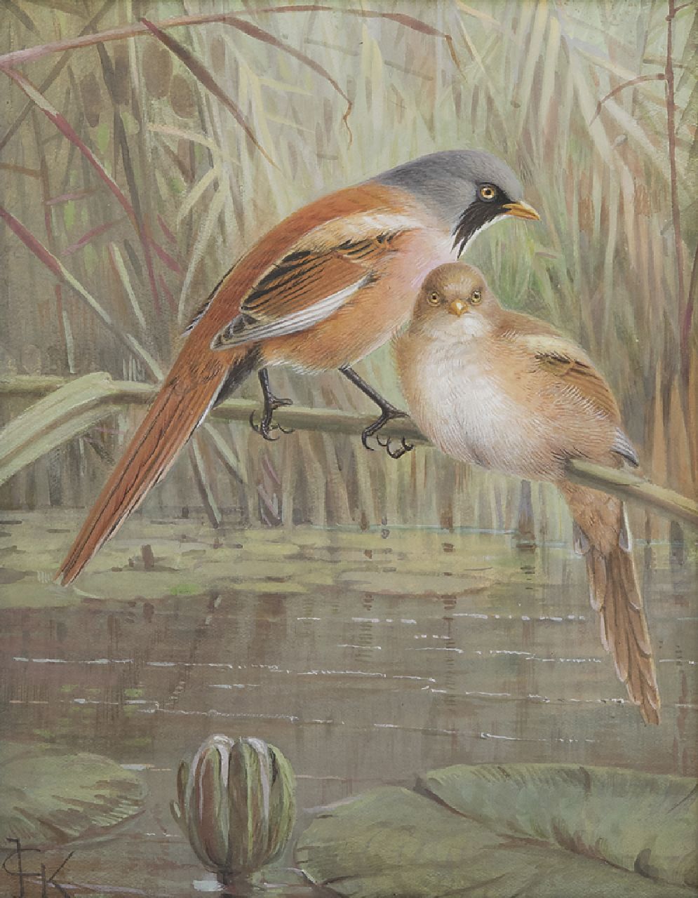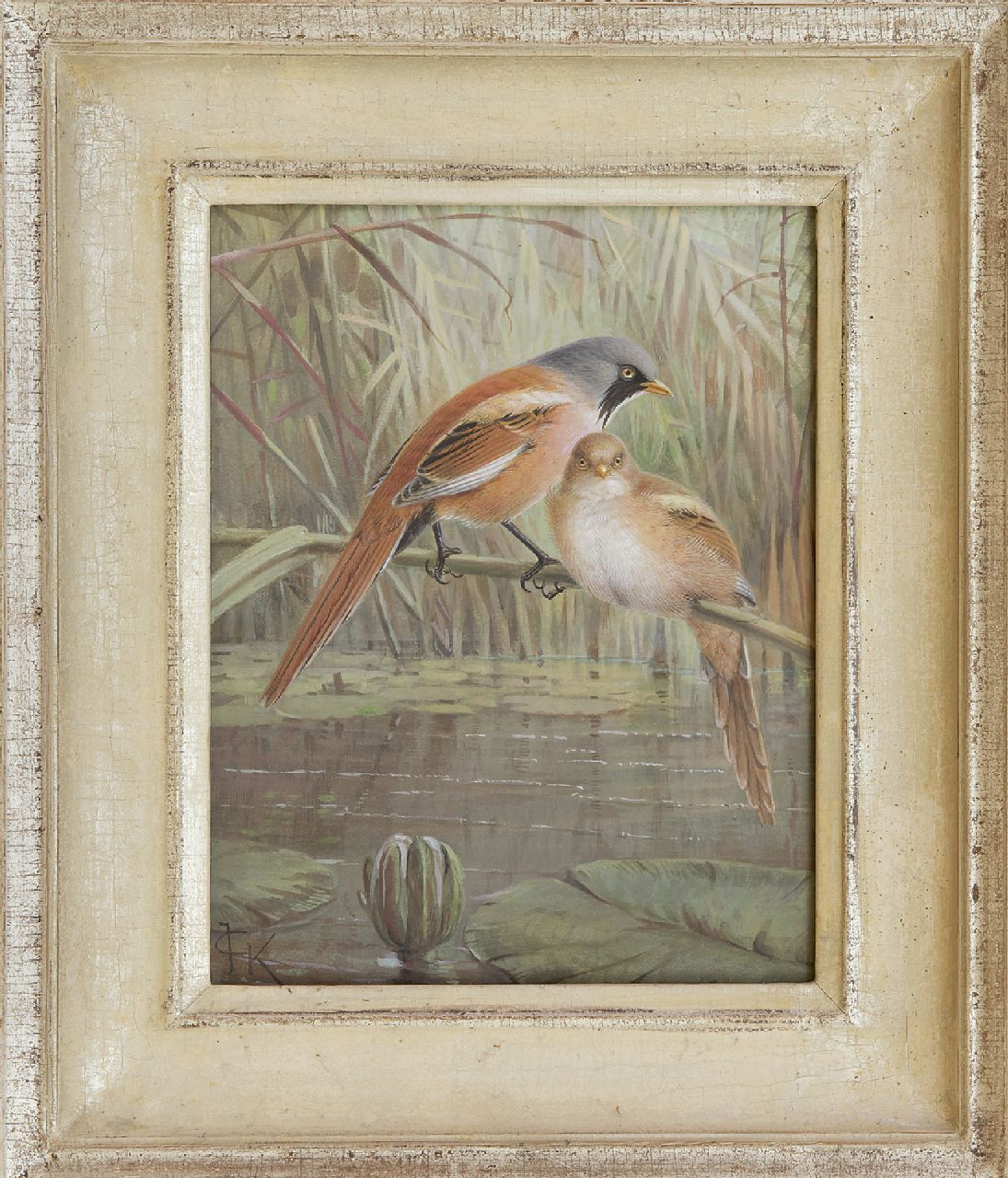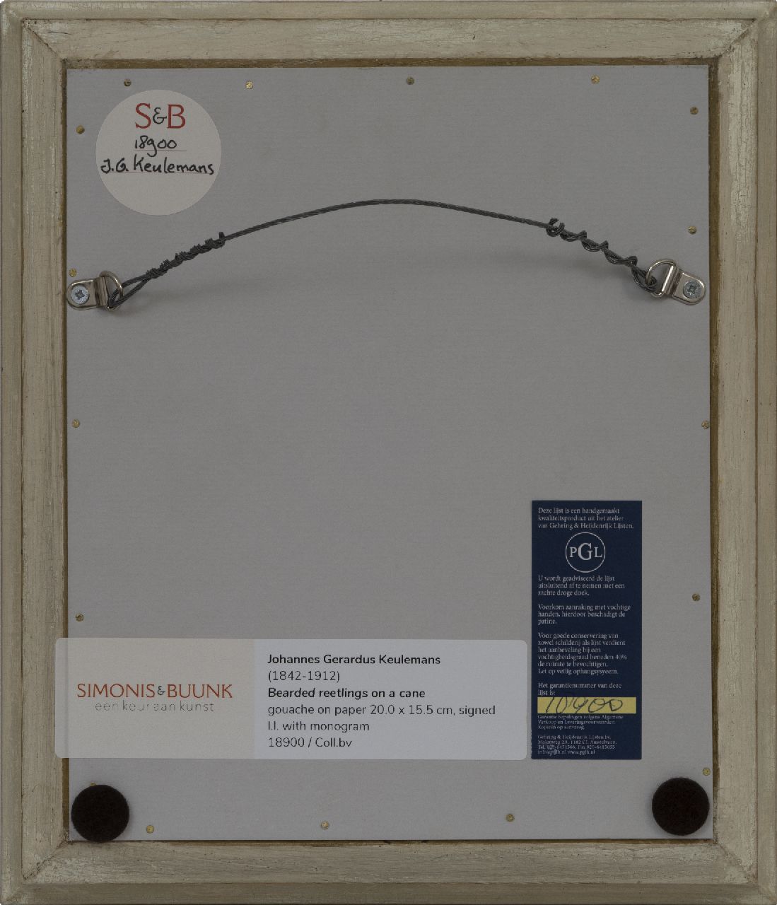Johannes Gerardus Keulemans kunstwerk • aquarel • tekening • voorheen te koop Baardmannetjes op een rietstengel