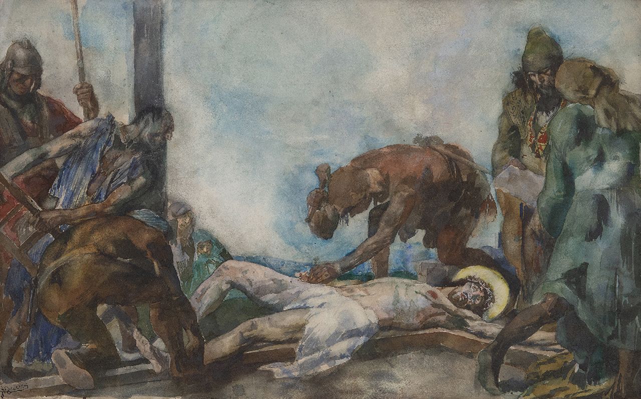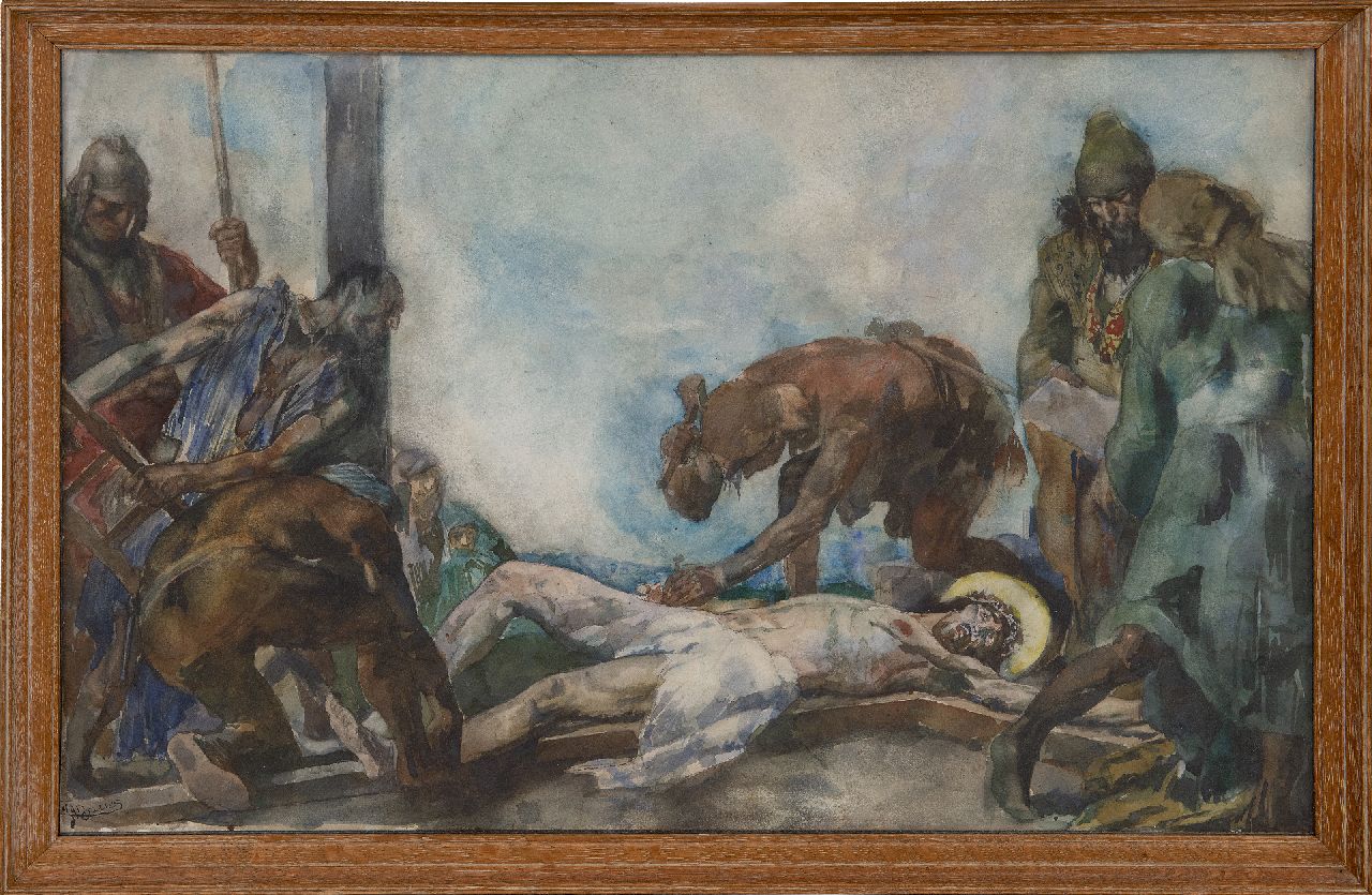 Johannes Hendricus Jurres kunstwerk • aquarel • tekening • voorheen te koop De kruisiging van Christus